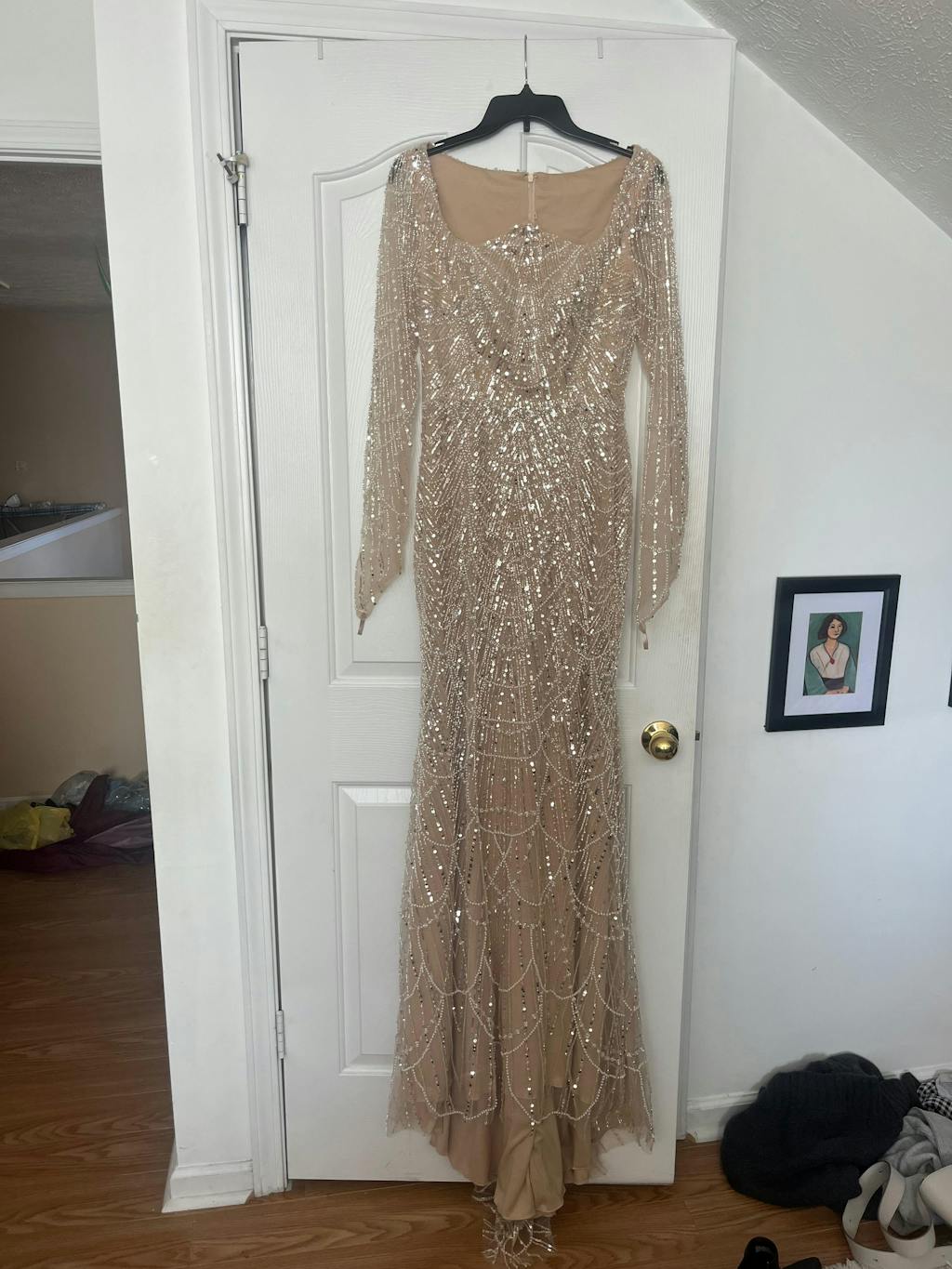 Expertly crafted with luxurious beading and a stunning champagne color, this long-sleeved mermaid evening dress exudes elegance and sophistication. Perfect for formal events, this dress will make you feel like a true VIP with its luxurious design and flattering silhouette. Elevate your style with the SS686dress.