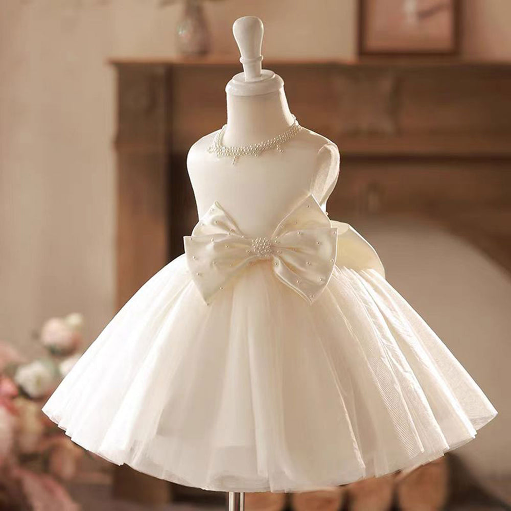 Dreamy Elegant Sleeveless Scoop Neck Princess Girl Dress With Bow J789
