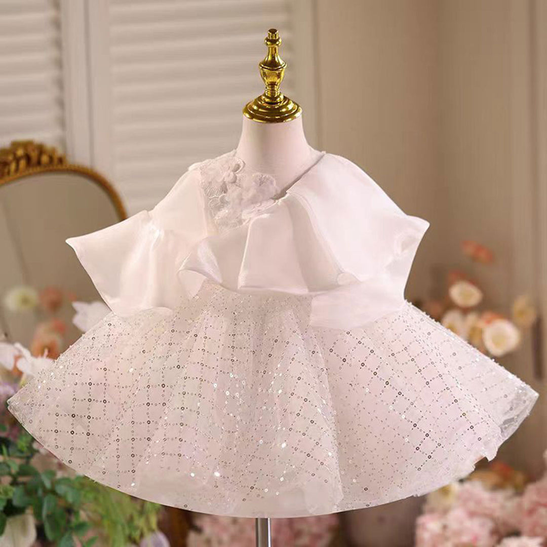 Elegant White Girl Princess Dress Tulle For Kids 1st Birthday J784