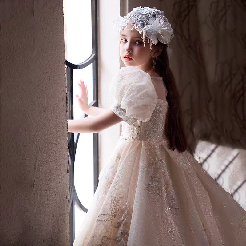 Floral Luxury Long Girl Dress for Princess Birthday Pageant J292B