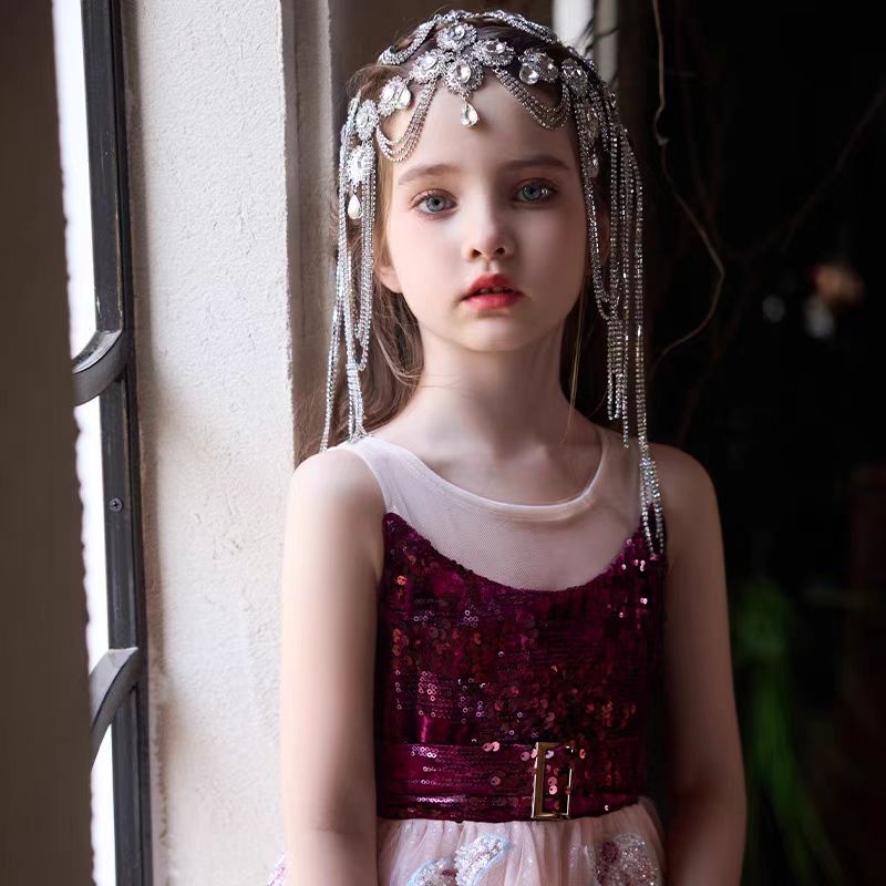 Lilac Girl Dress Sequined Kids Pageant Girl Dress J331