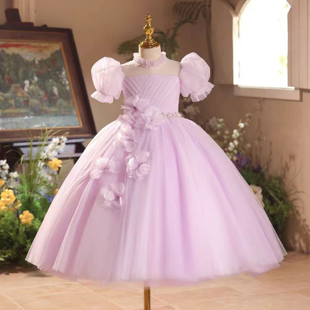 Applique Tassel Tulle Embroidered Girl Ball Gown Pink J494