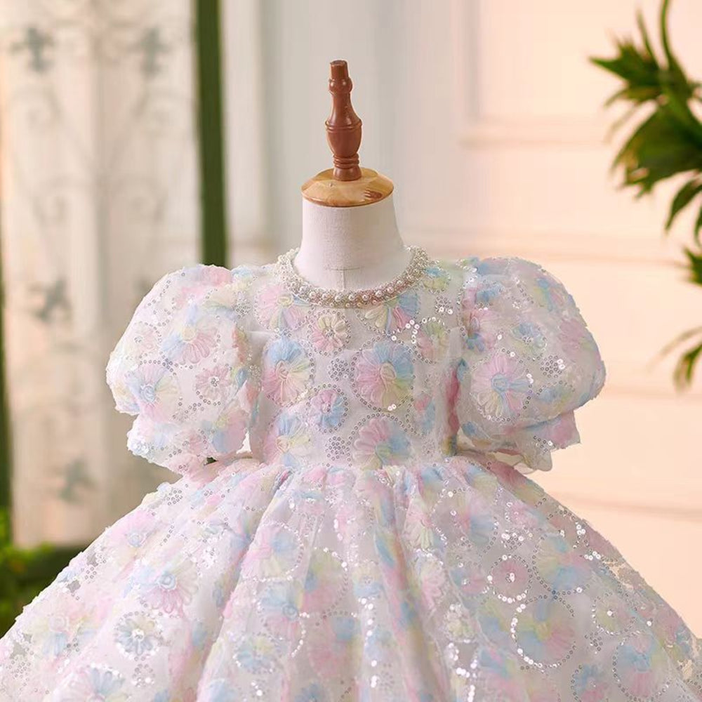 Crystal Knee Length Toddler 1 St Birthday Girl Dress D098