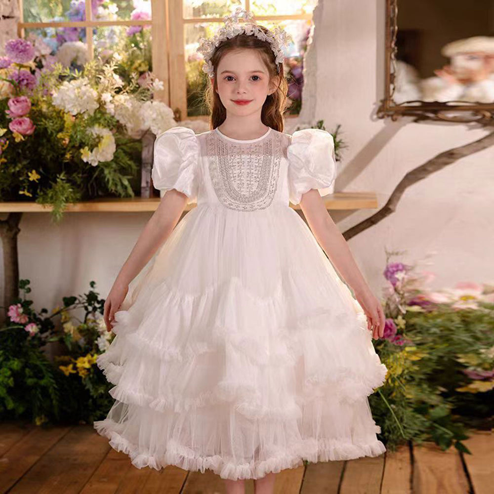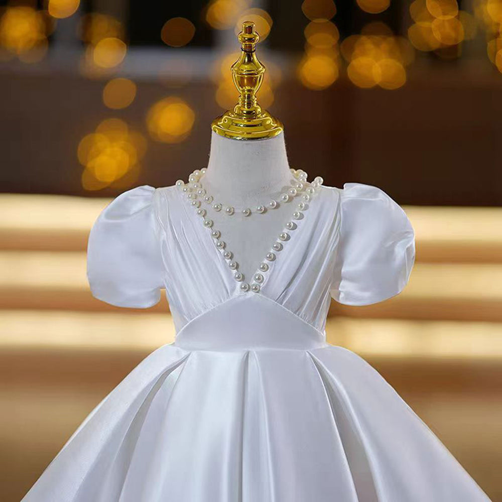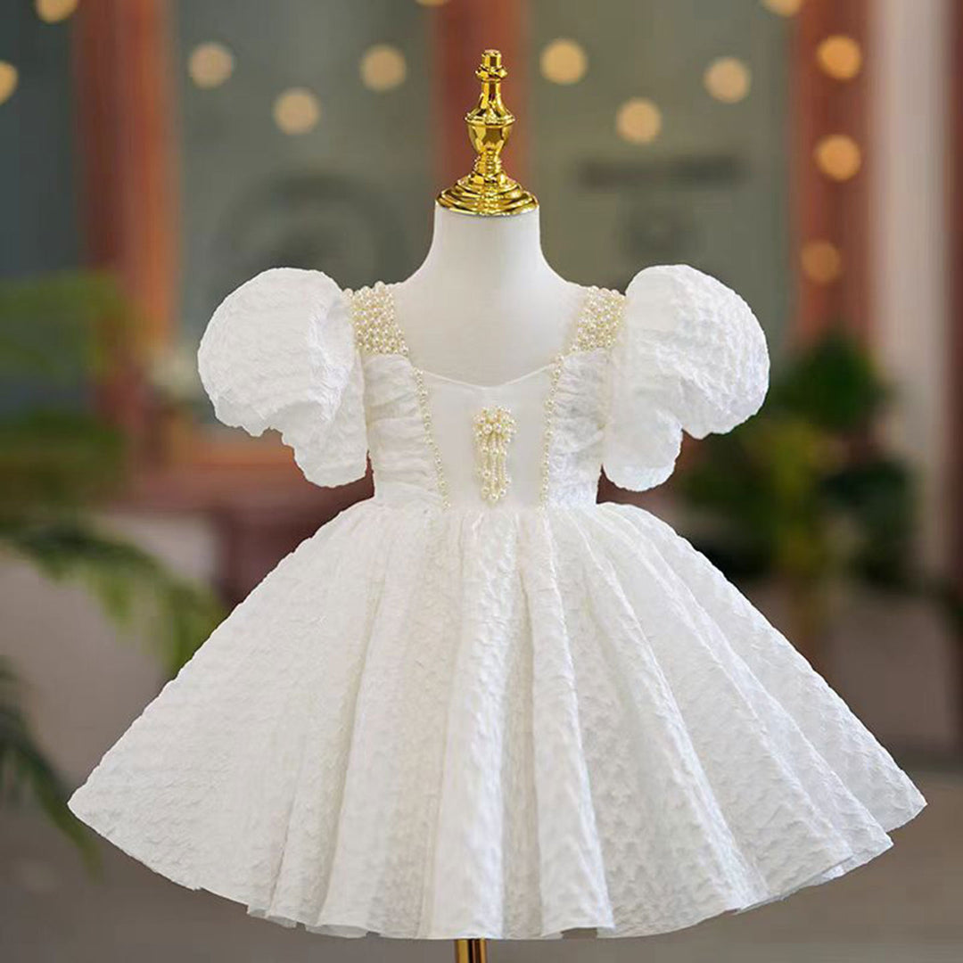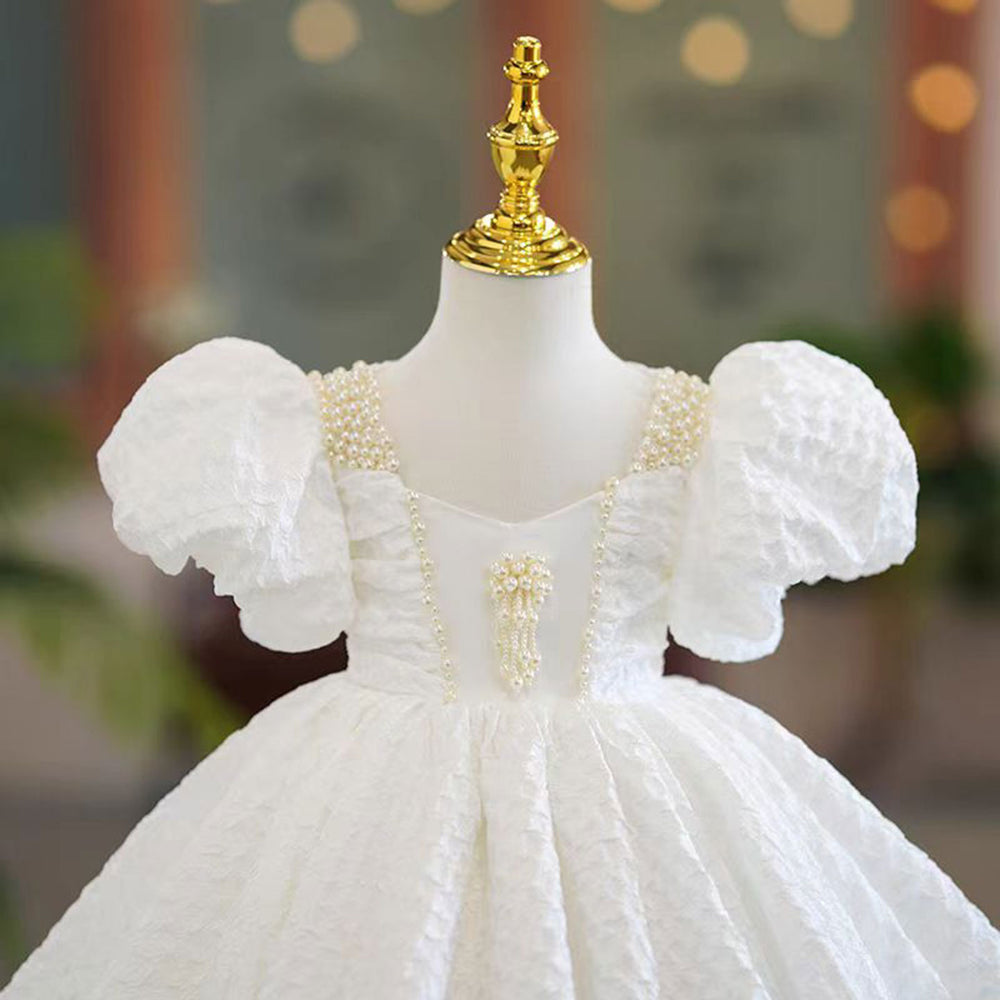 Charming Square Collar Flower Girl Dress Pearls White J796