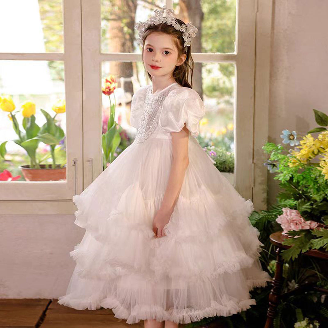 Cute O-Neck Sequined Pearl Flower Girl Dress With Bow J745