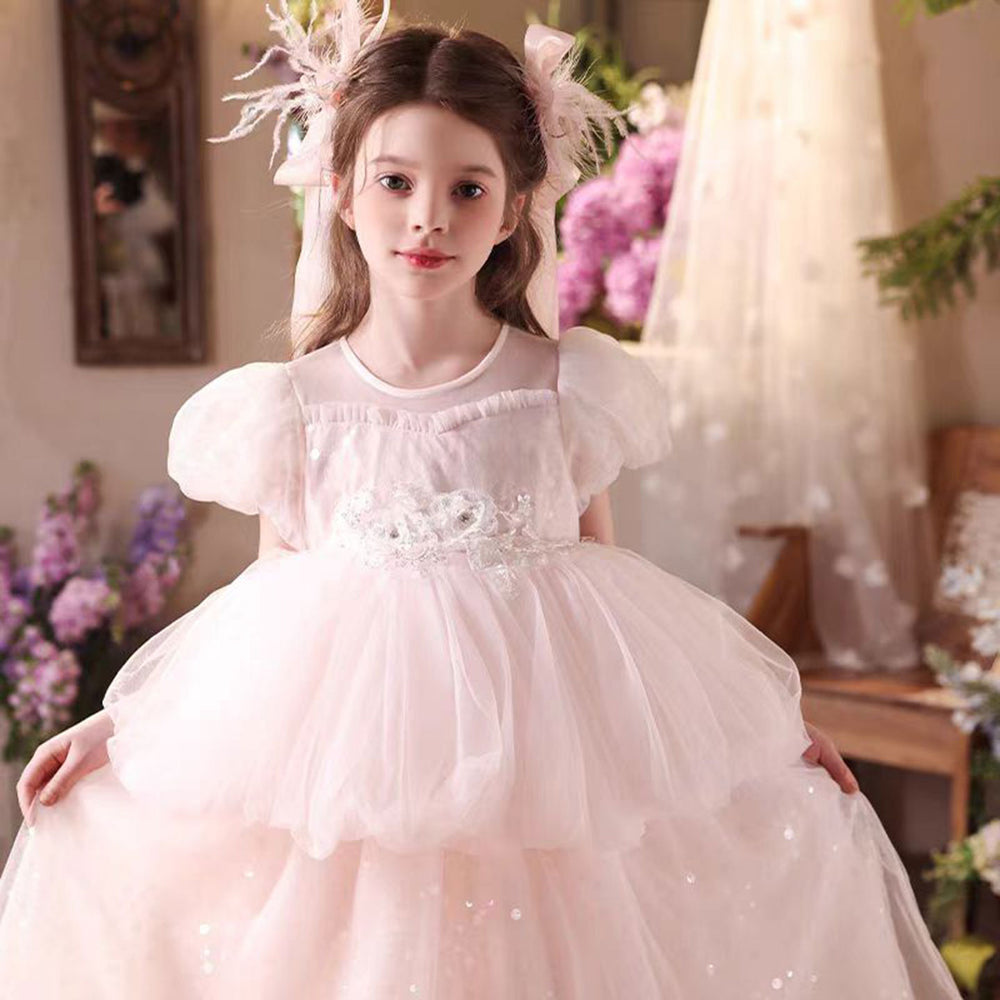 Blush Pink Flower Girl Dress with Sequins Embroidery J232