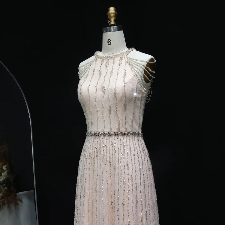 Luxury Feathers Lace Cream Evening Dress SS595