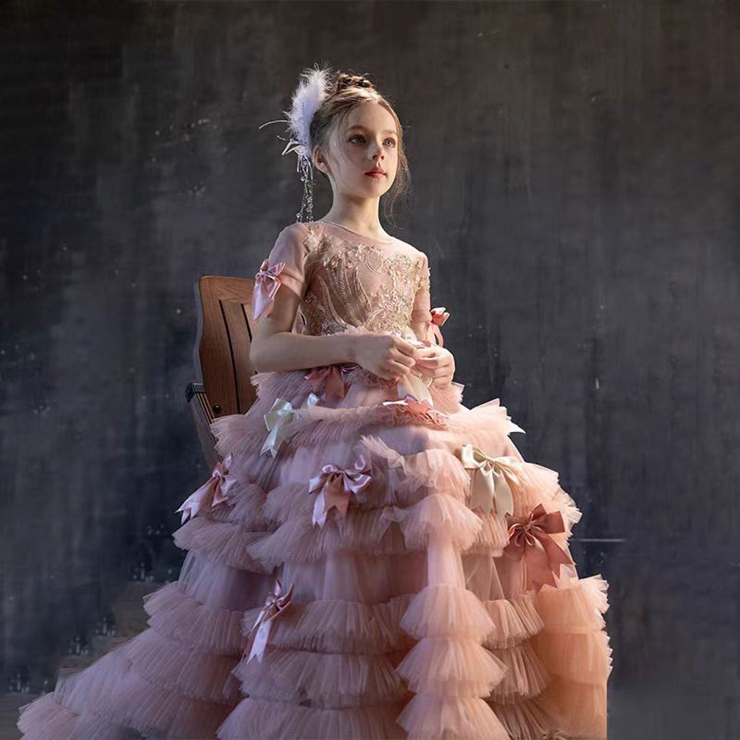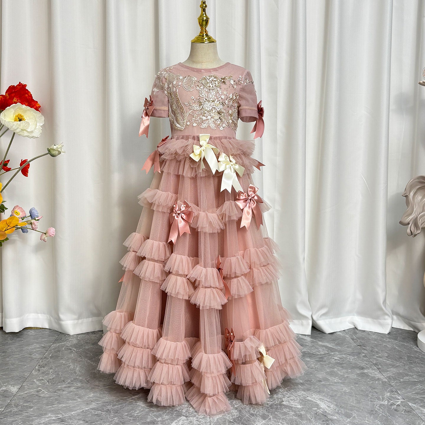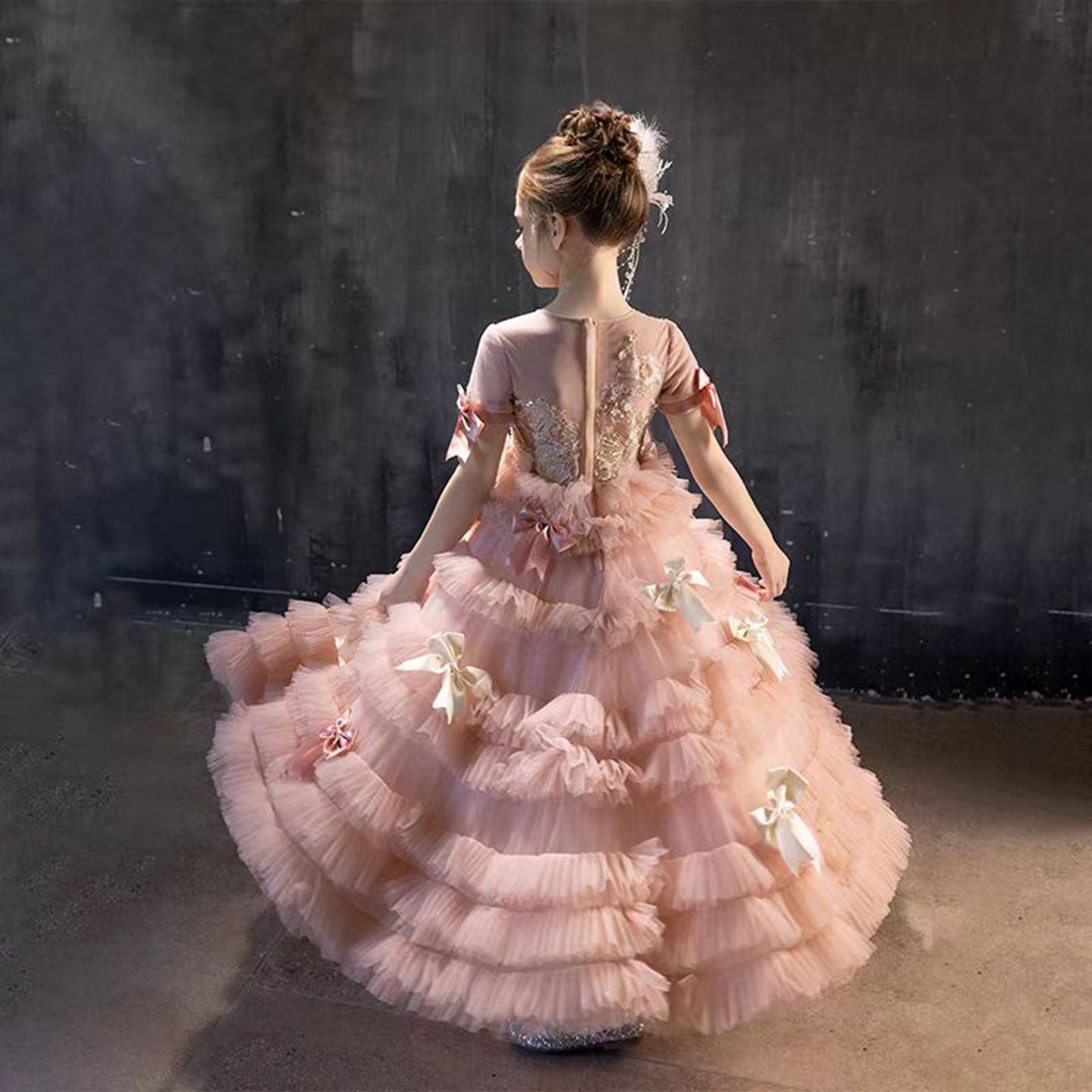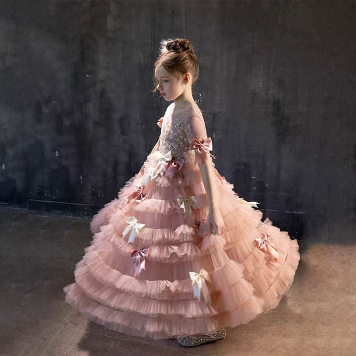 Luxury Pink A-Line Beading Girl Dress Princess Birthday Gown J084