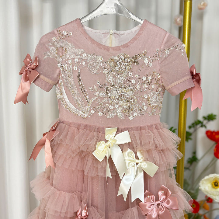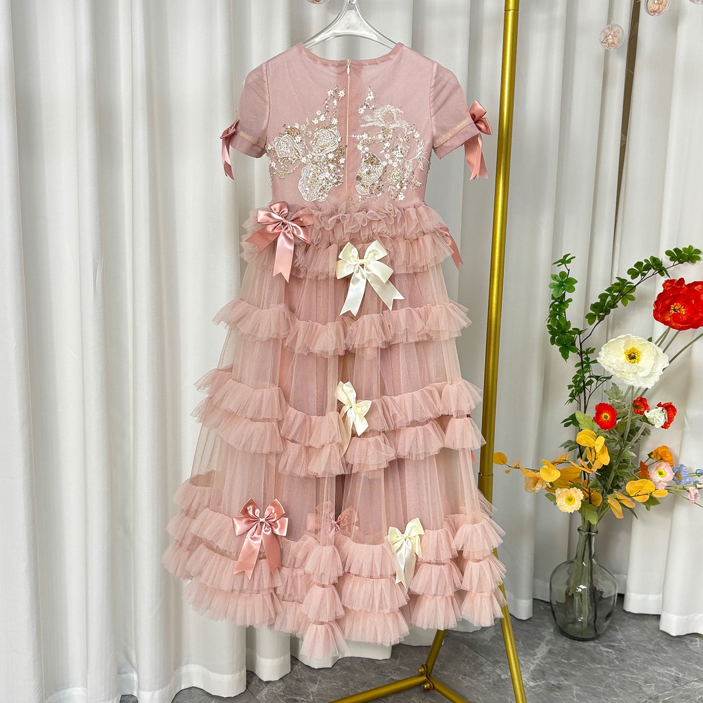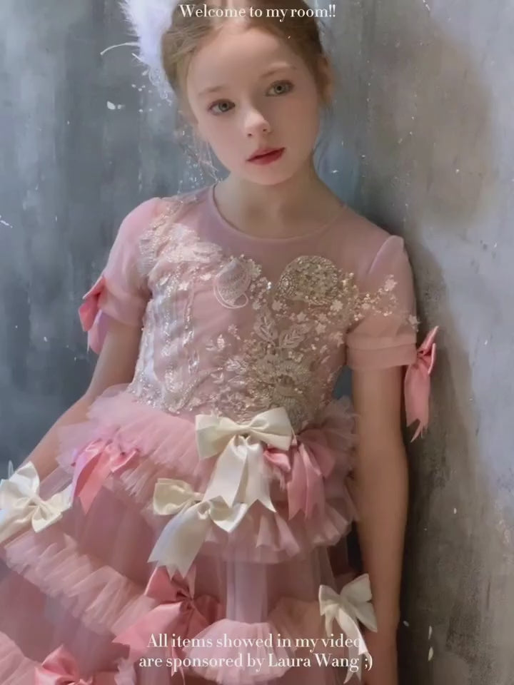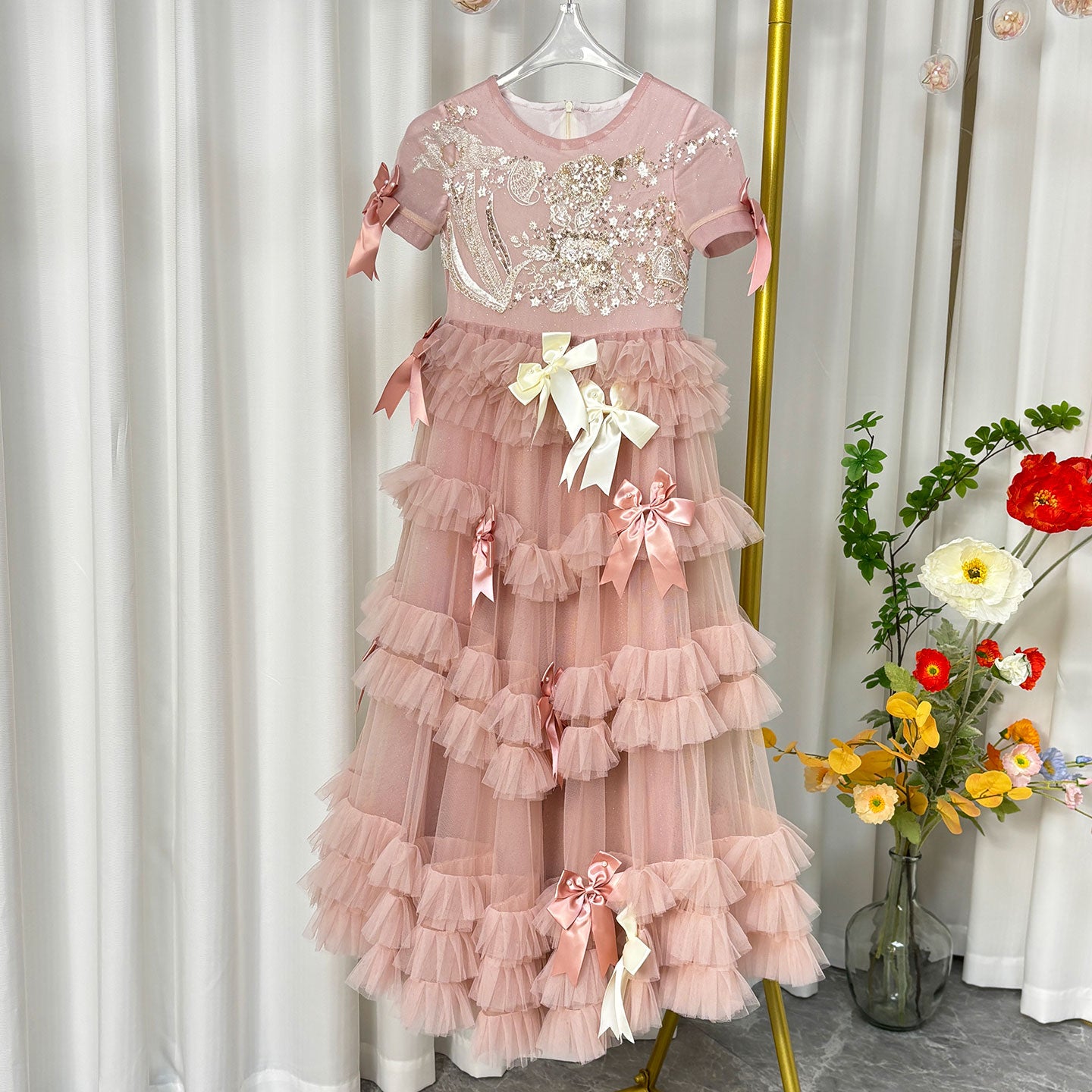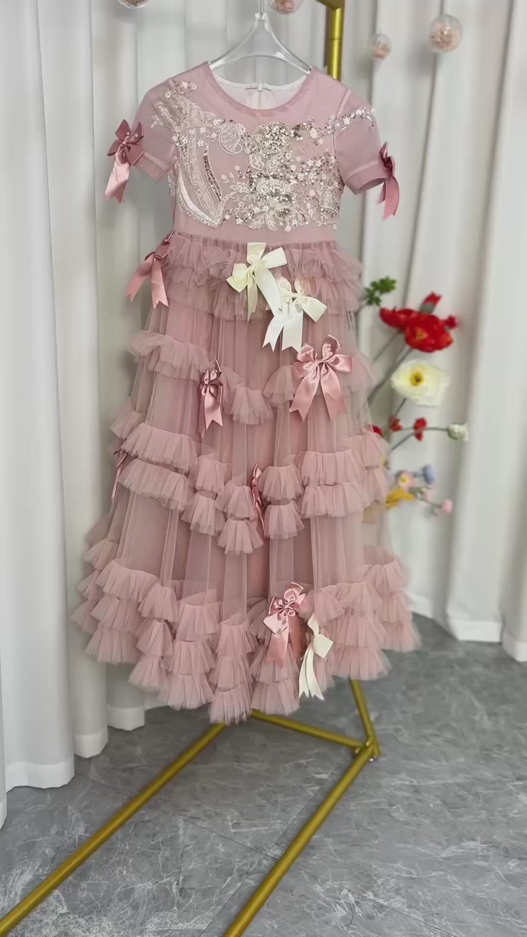 Luxury Pink A-Line Beading Girl Dress Princess Birthday Gown J084