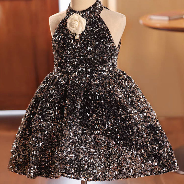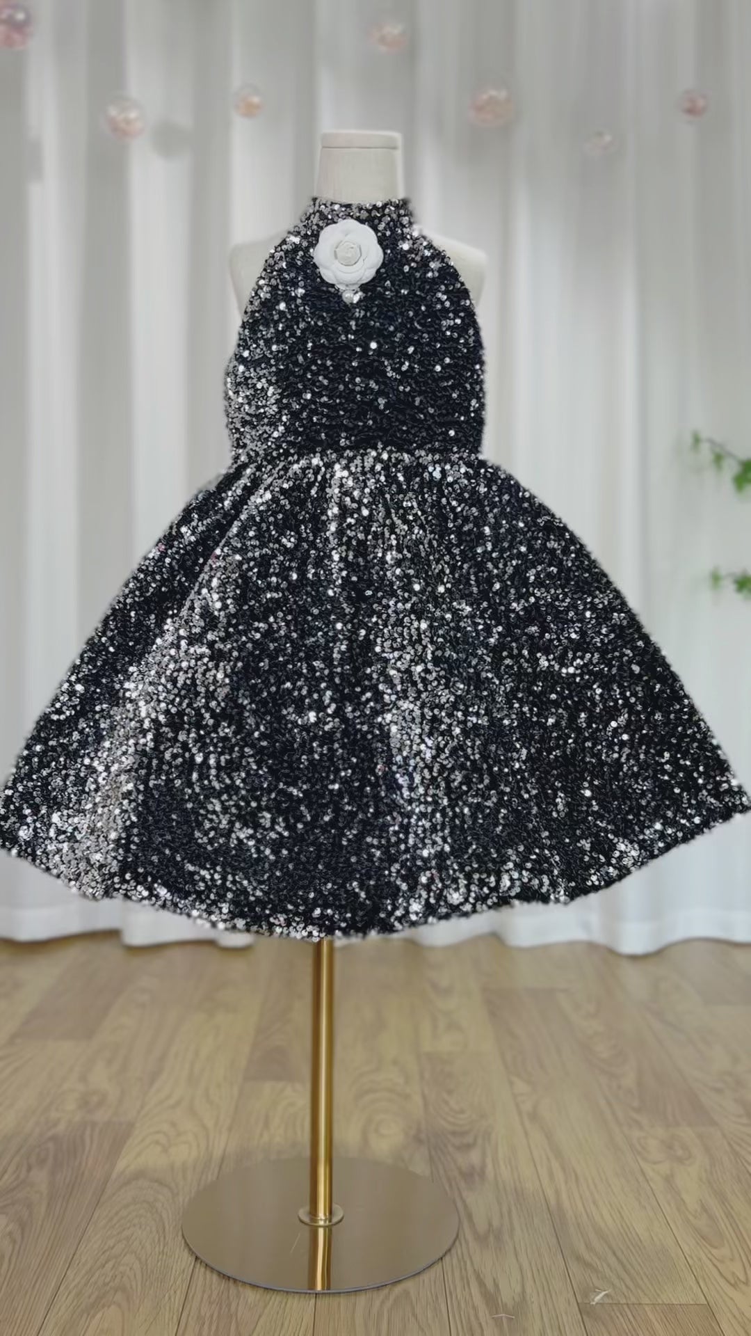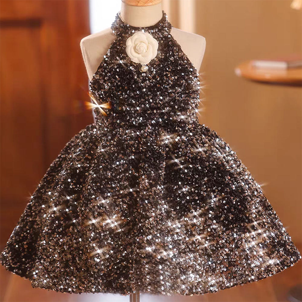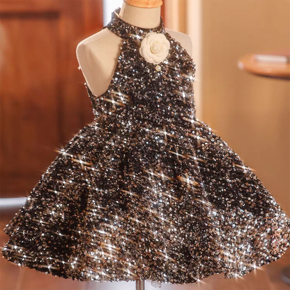 Sparkly Black Princess Girl Dress for Birthday Holiday Party J036
