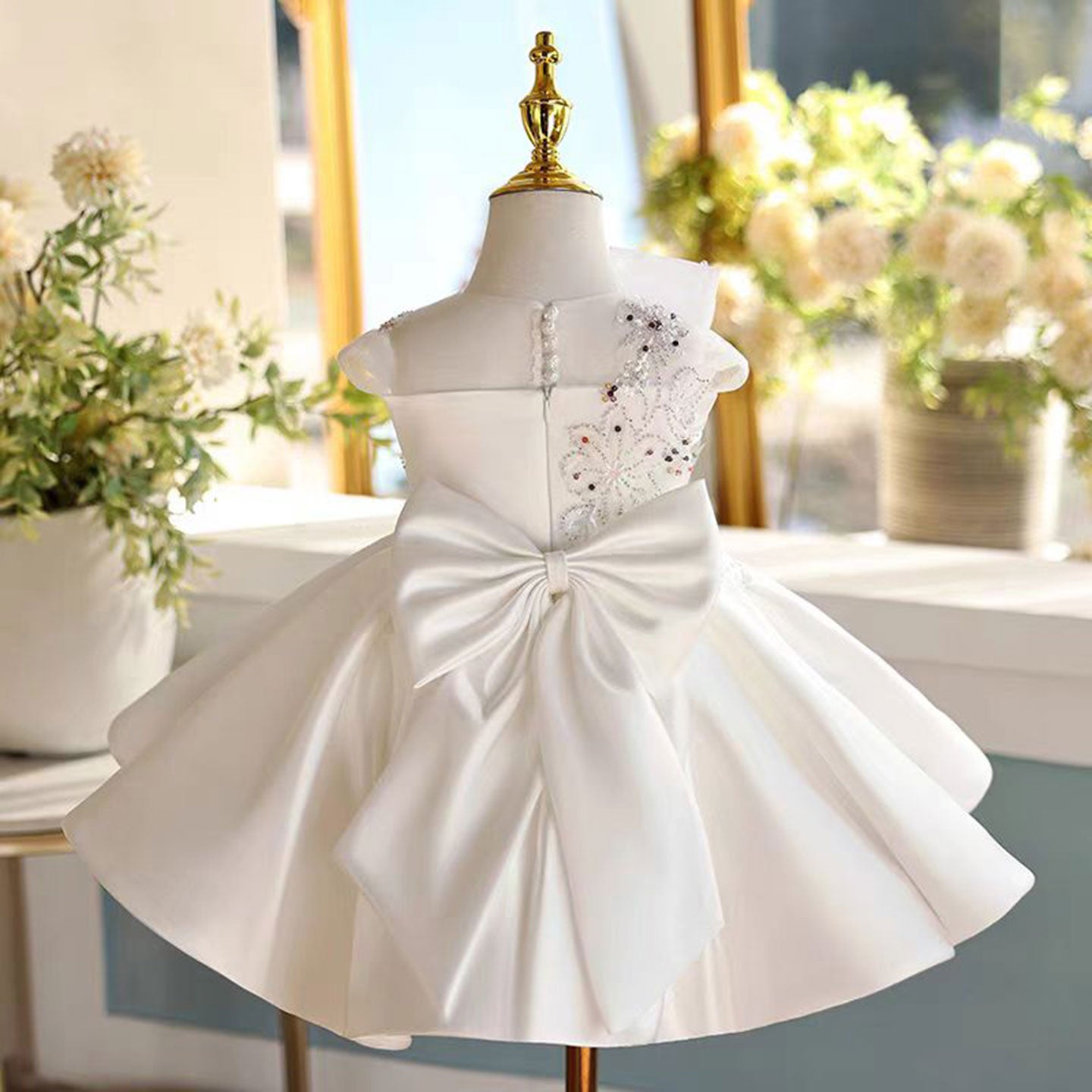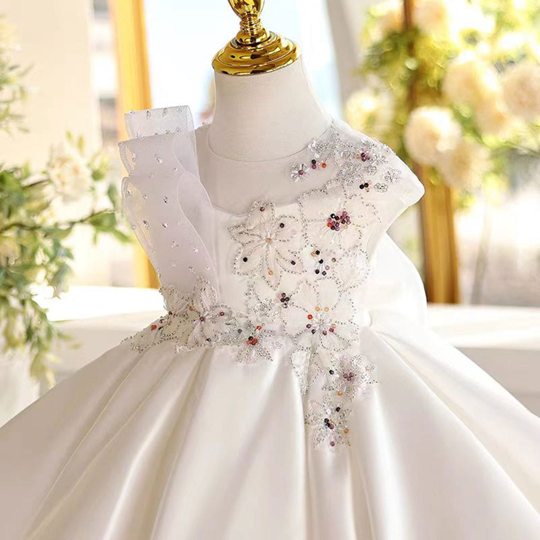 White Girl Dress for Kids 1st Toddler Birthday Party Gown J462
