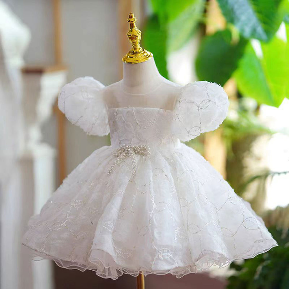 Elegant White Girl Dress Pearls Princess Baby Kids Gown J305