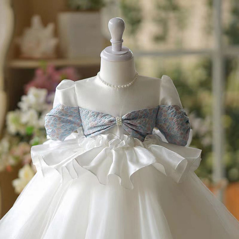 Luxury White Long Sleeve Princess Birthday Flower Girl Dress D212