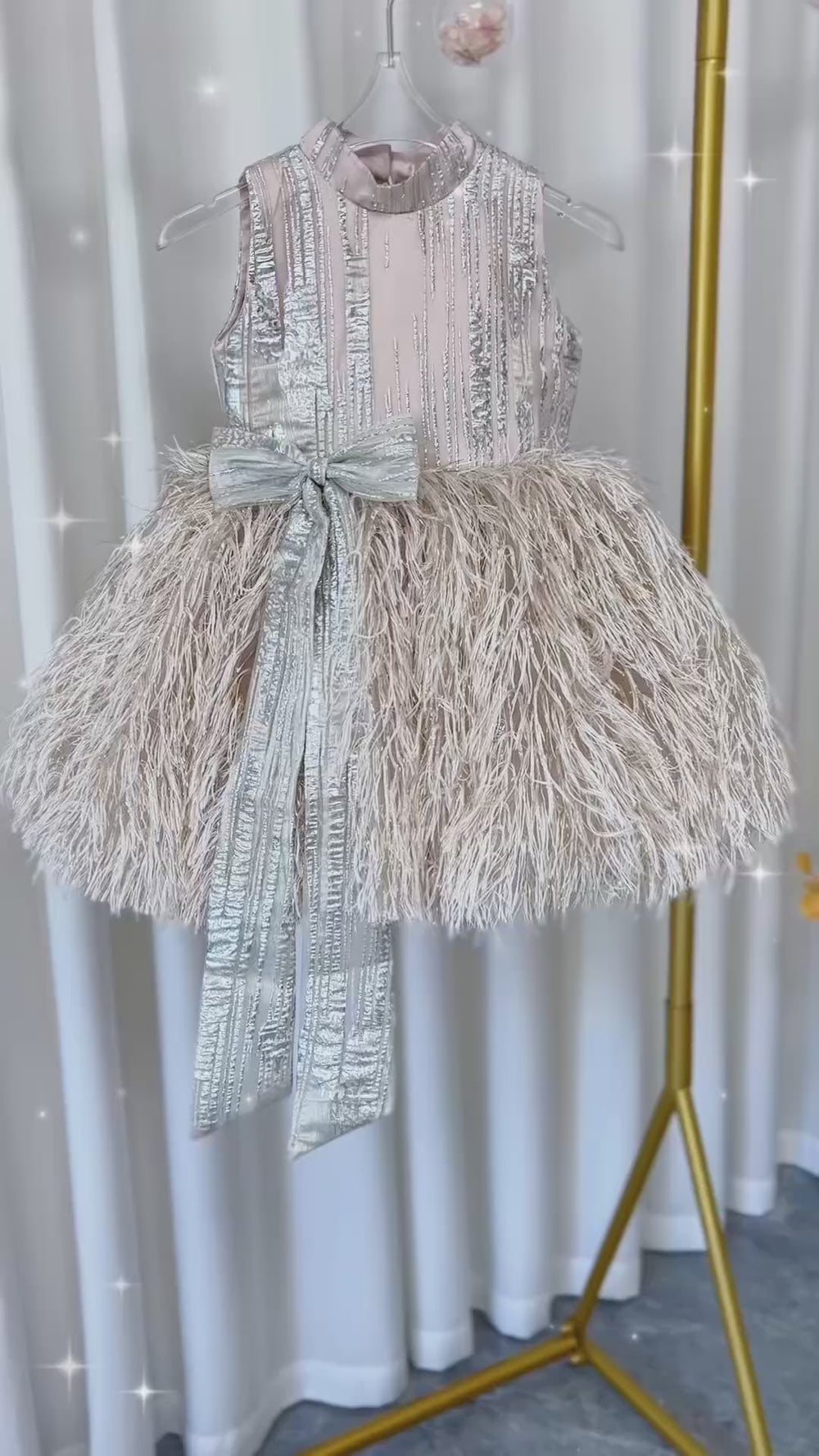 Luxury Champagne Girl Dress Feathers Dubai Kids Pink J323