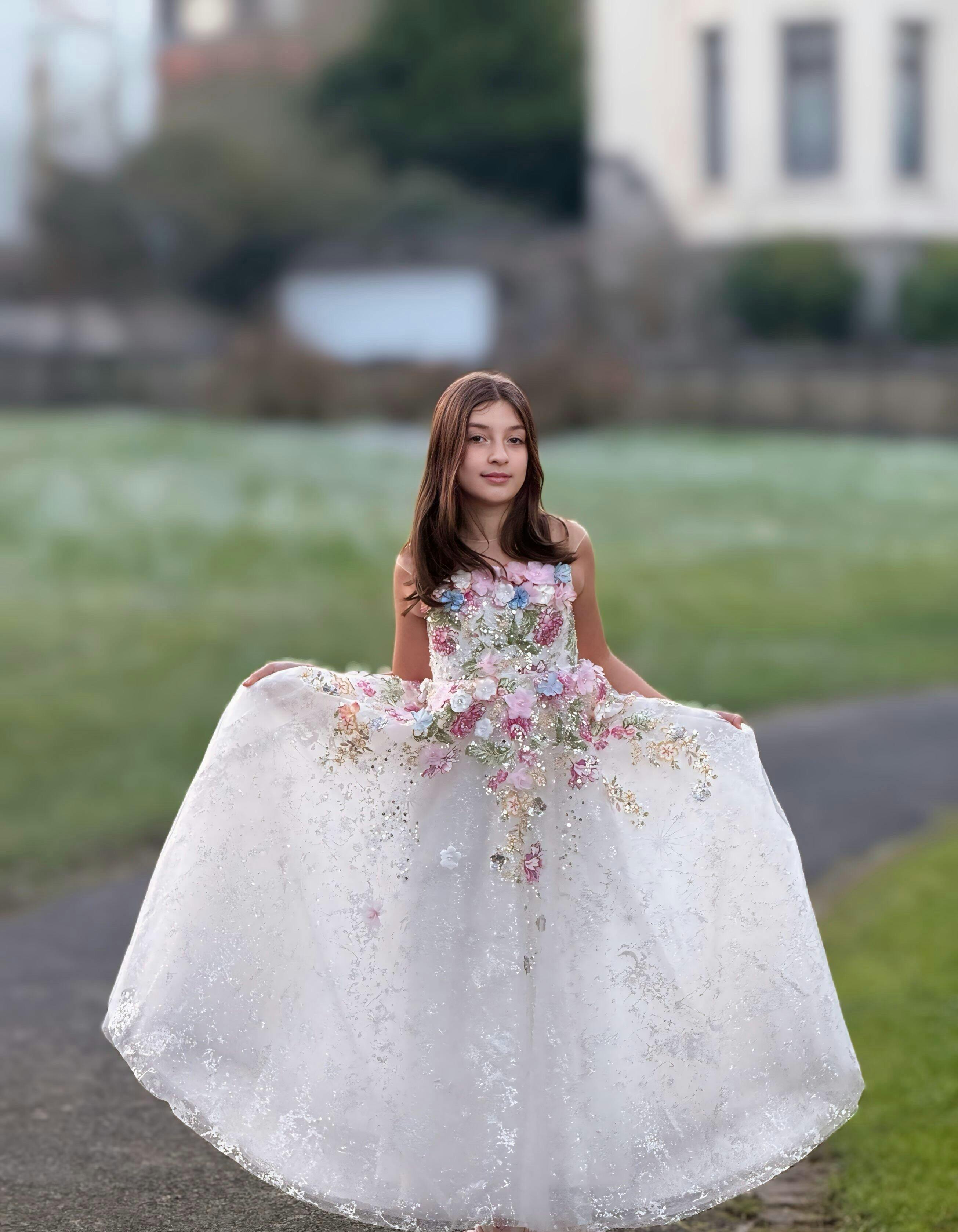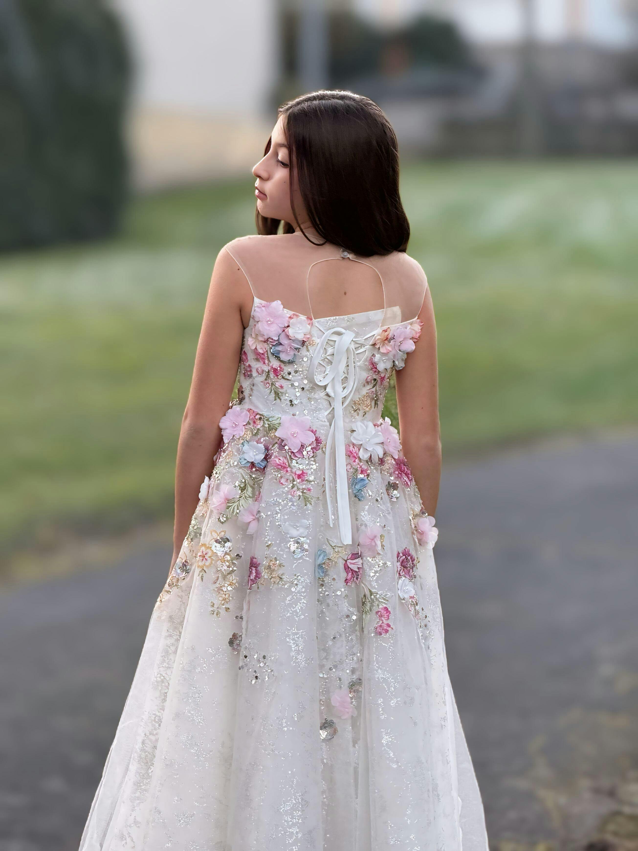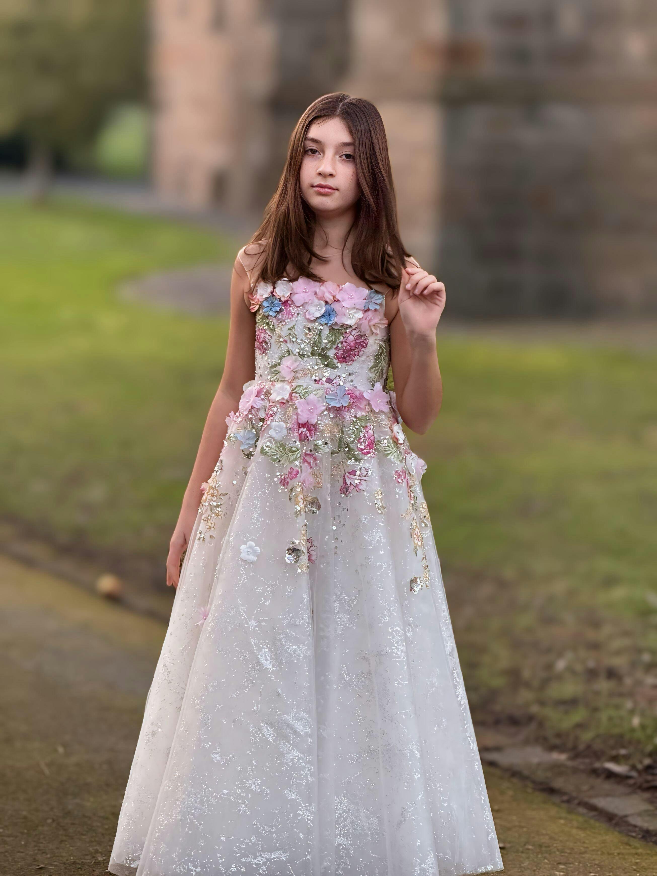 Luxury Floral Flower Girl Dress for Kids Wedding Pageant Party J292A