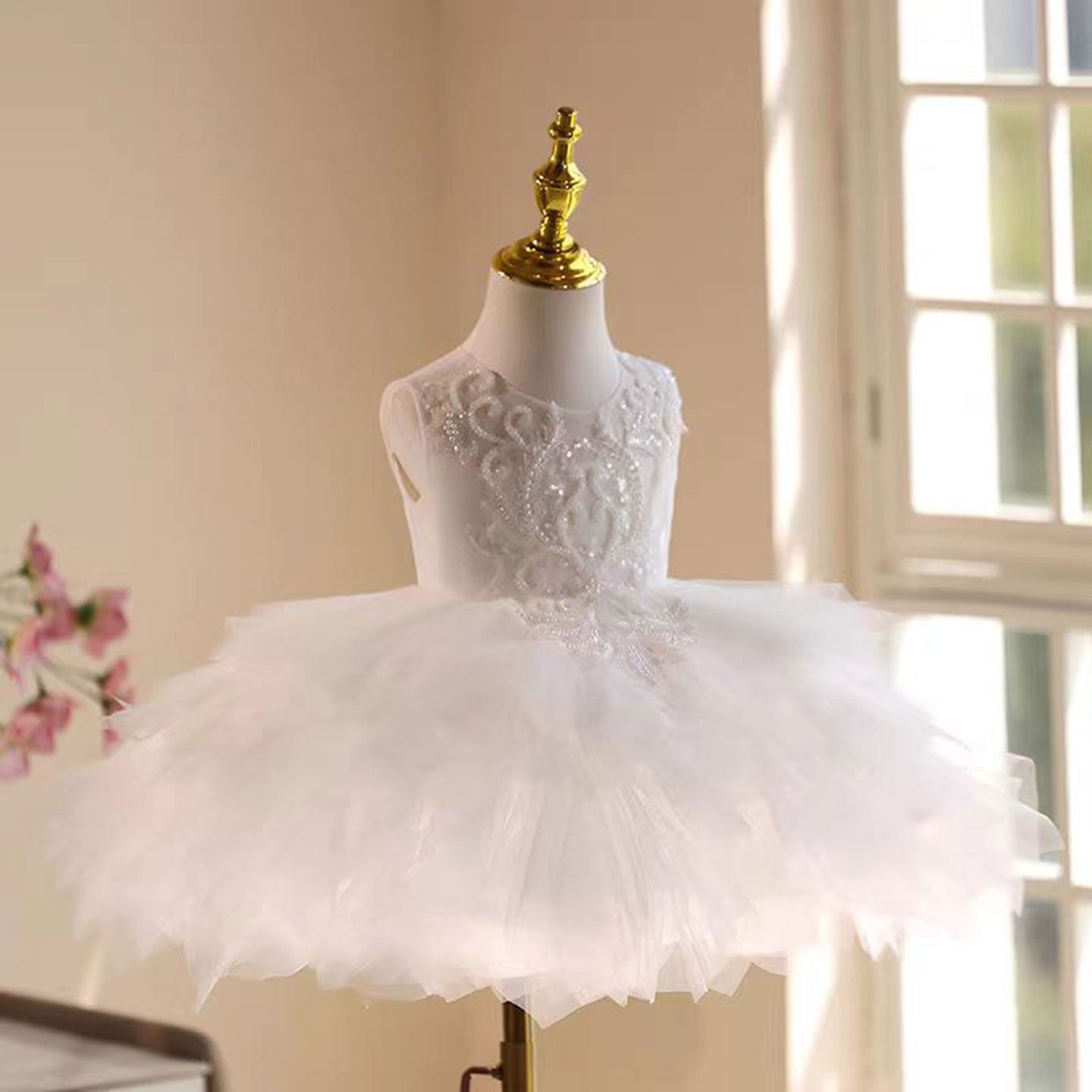 O-Neckline Tulle Flower Girl Dress With Veil Sleeveless J856