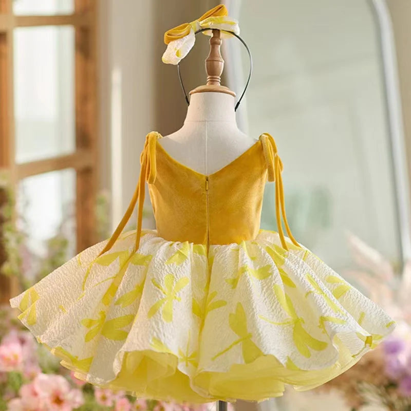 Elegant Gold Girl Dress with Bow Ball Gown J006