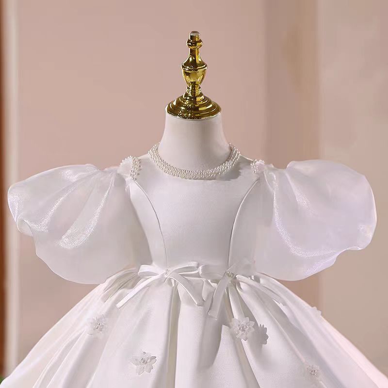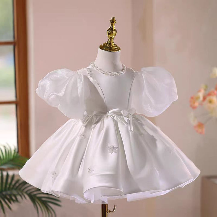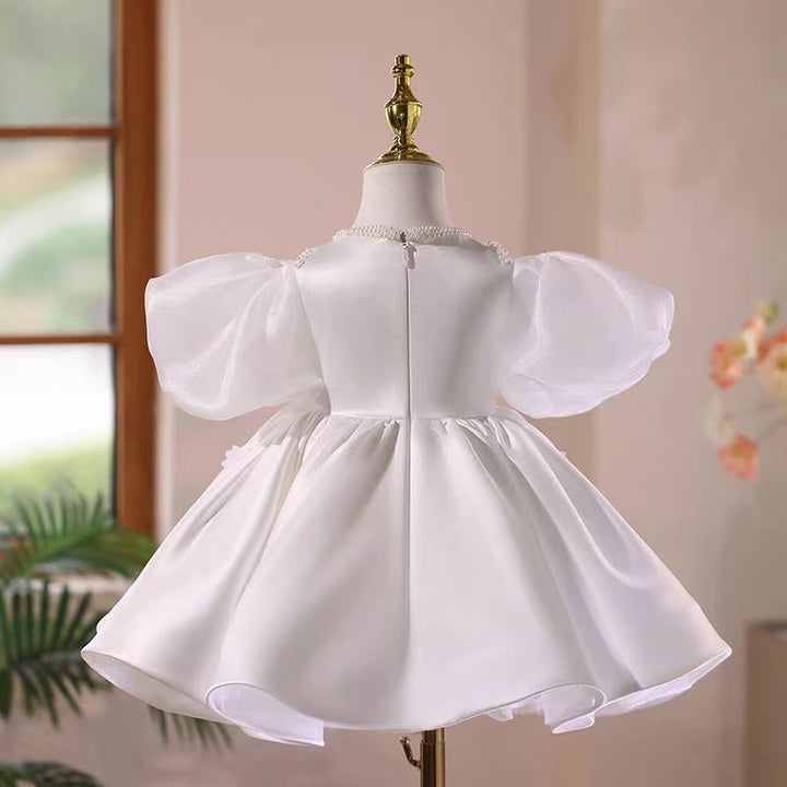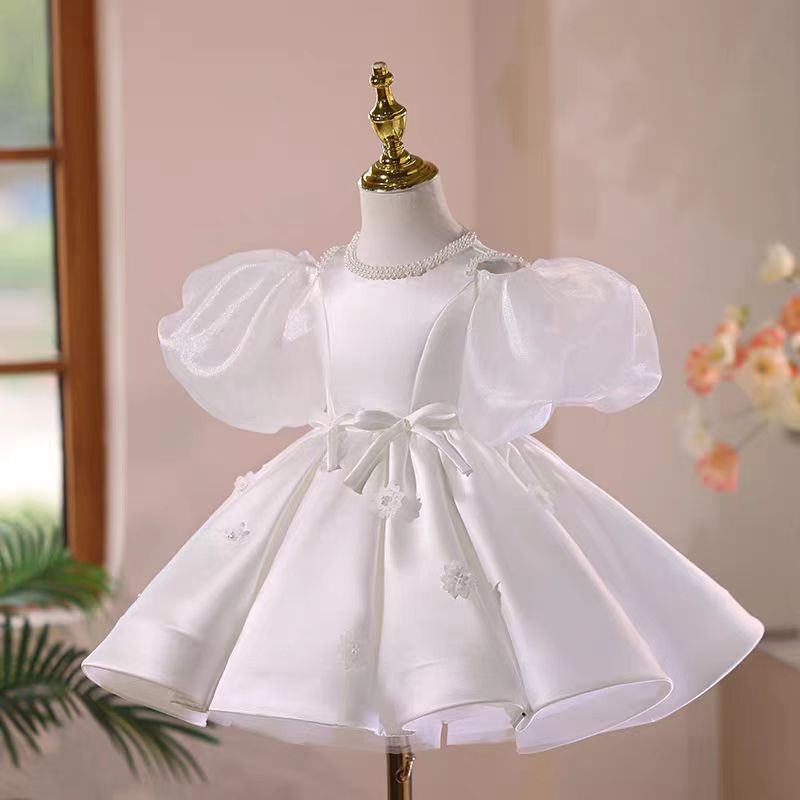 White Flower Girl Dress Knee Length for Birthday Party J549