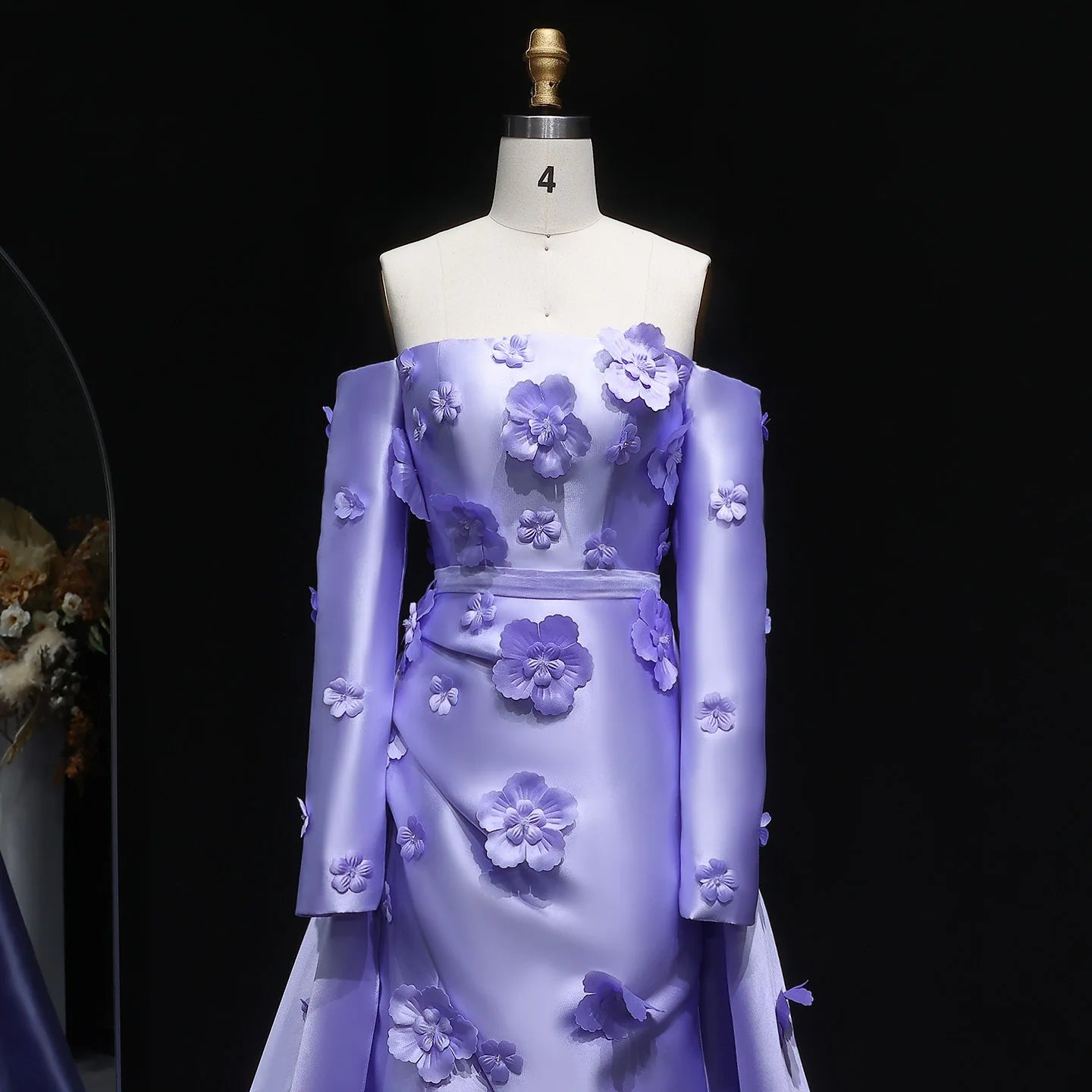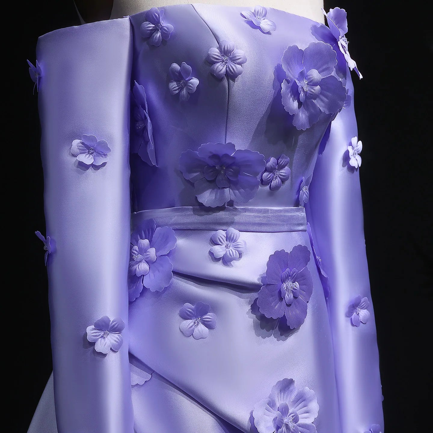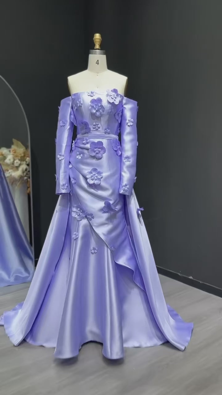 This gorgeous evening dress features delicate 3D pink flowers and an elegant overskirt. It's perfect for any special occasion, adding a touch of romance and grace to your look. Stand out in the crowd with this stunning dress.