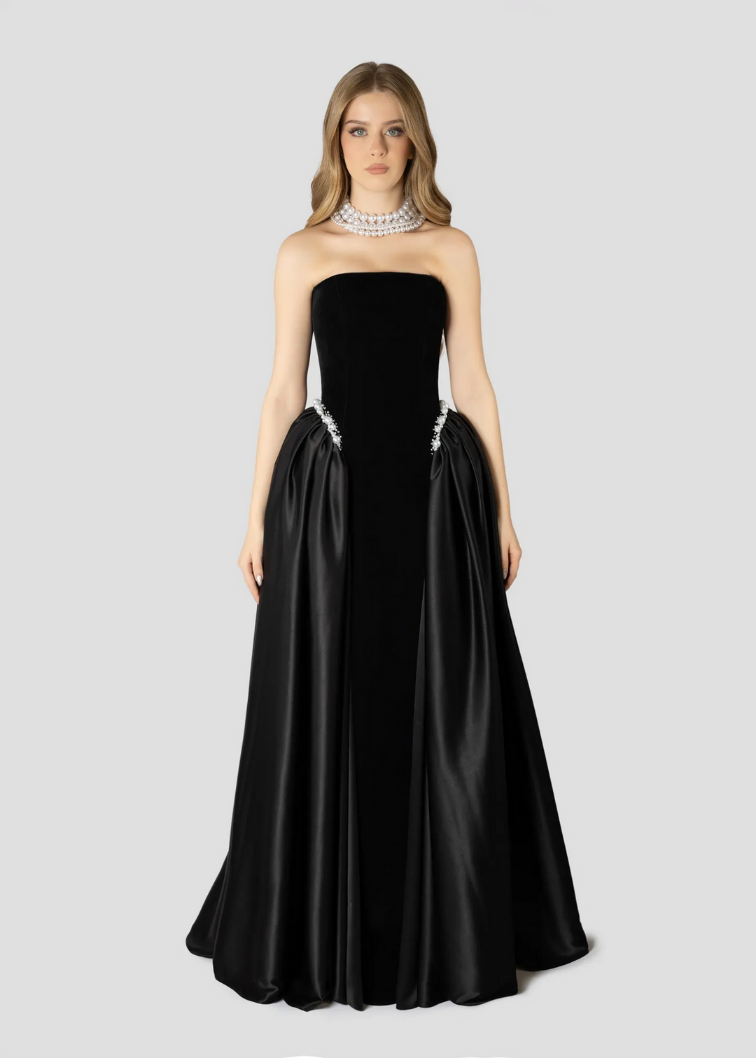 Luxury Black and White Ball Gown Dubai Evening Dress SS290