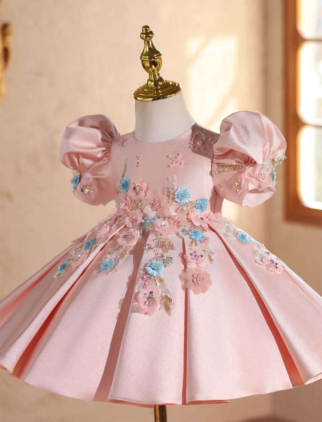 Elegant Pink Beaded Flower Girl Dress Princess Birthday J842
