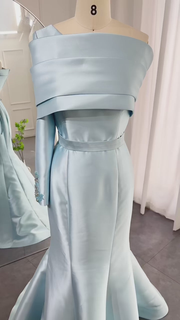 Dreamy Vow Arabic Yellow One Shoulder Mermaid Evening Dress with Cape Baby Blue Beaded Dubai Luxury Wedding Party Dress SF014-DreamyVow