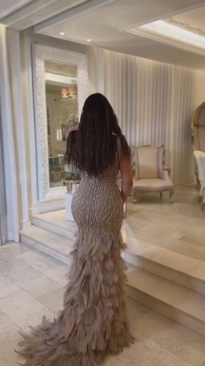 Luxury Feathers Pink Mermaid Evening Dresses SS184