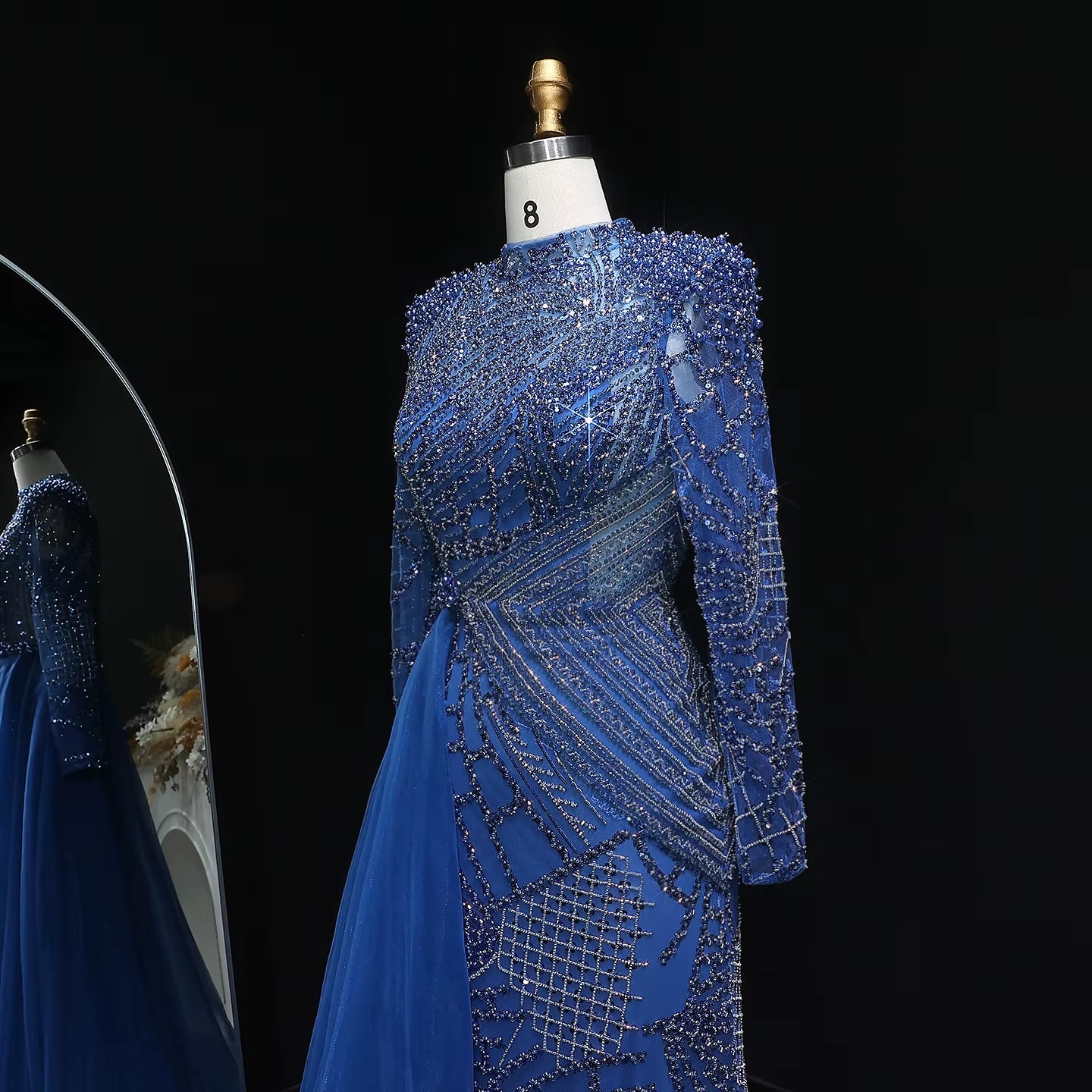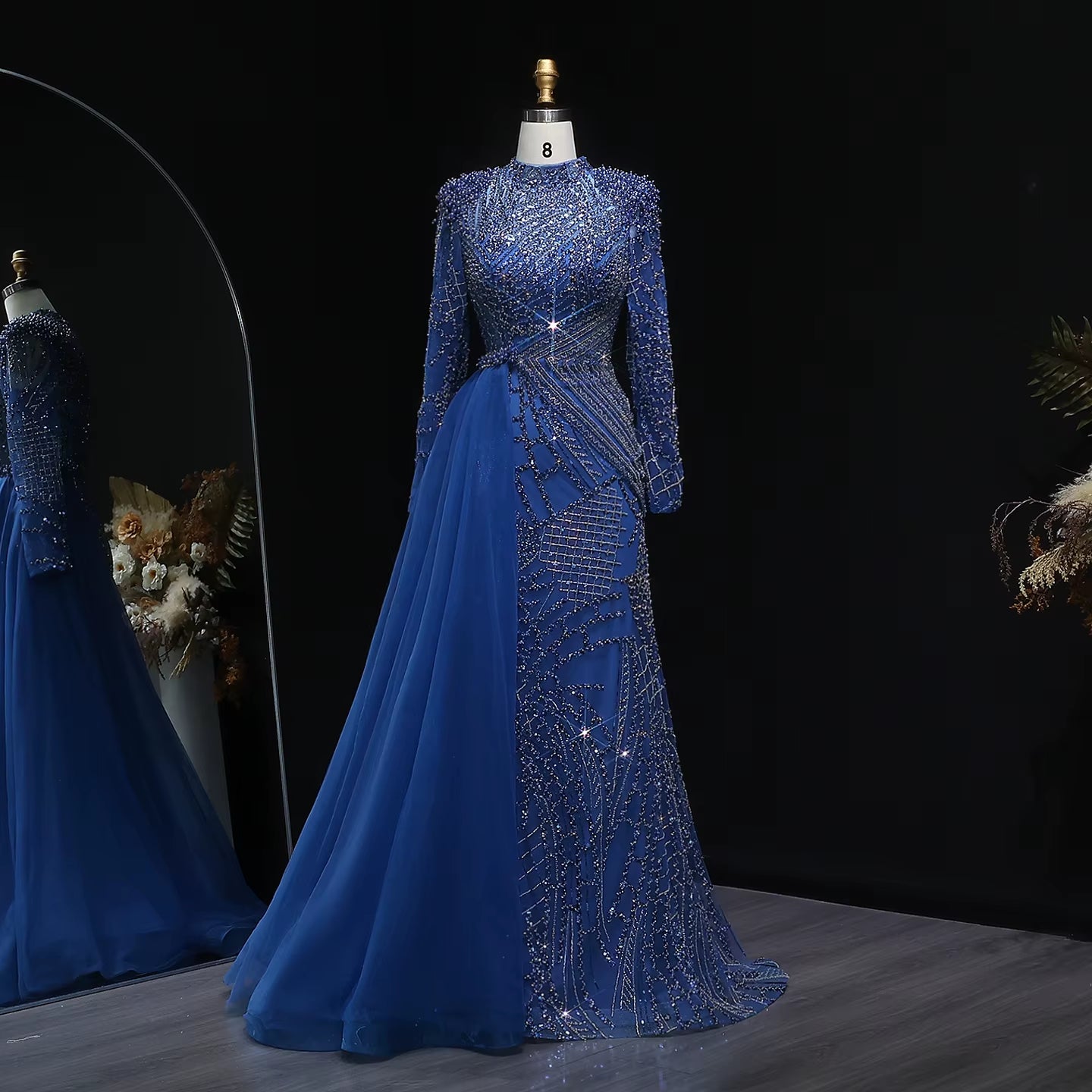 Experience refined glamour with the Luxury Beaded Evening Dress featuring a flowing overskirt. Expertly adorned with intricate beadwork, this dress combines meticulous craftsmanship with elegant design. The flowing overskirt adds movement and versatility, allowing you to adapt your look seamlessly for different moments throughout your event. Perfect for those seeking sophistication and style in one exquisite gown.