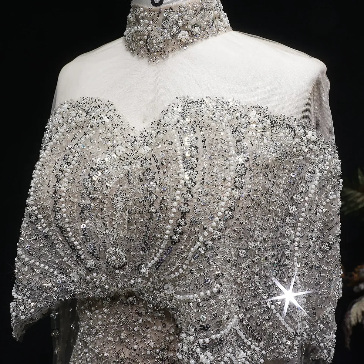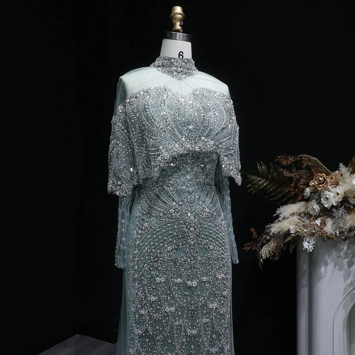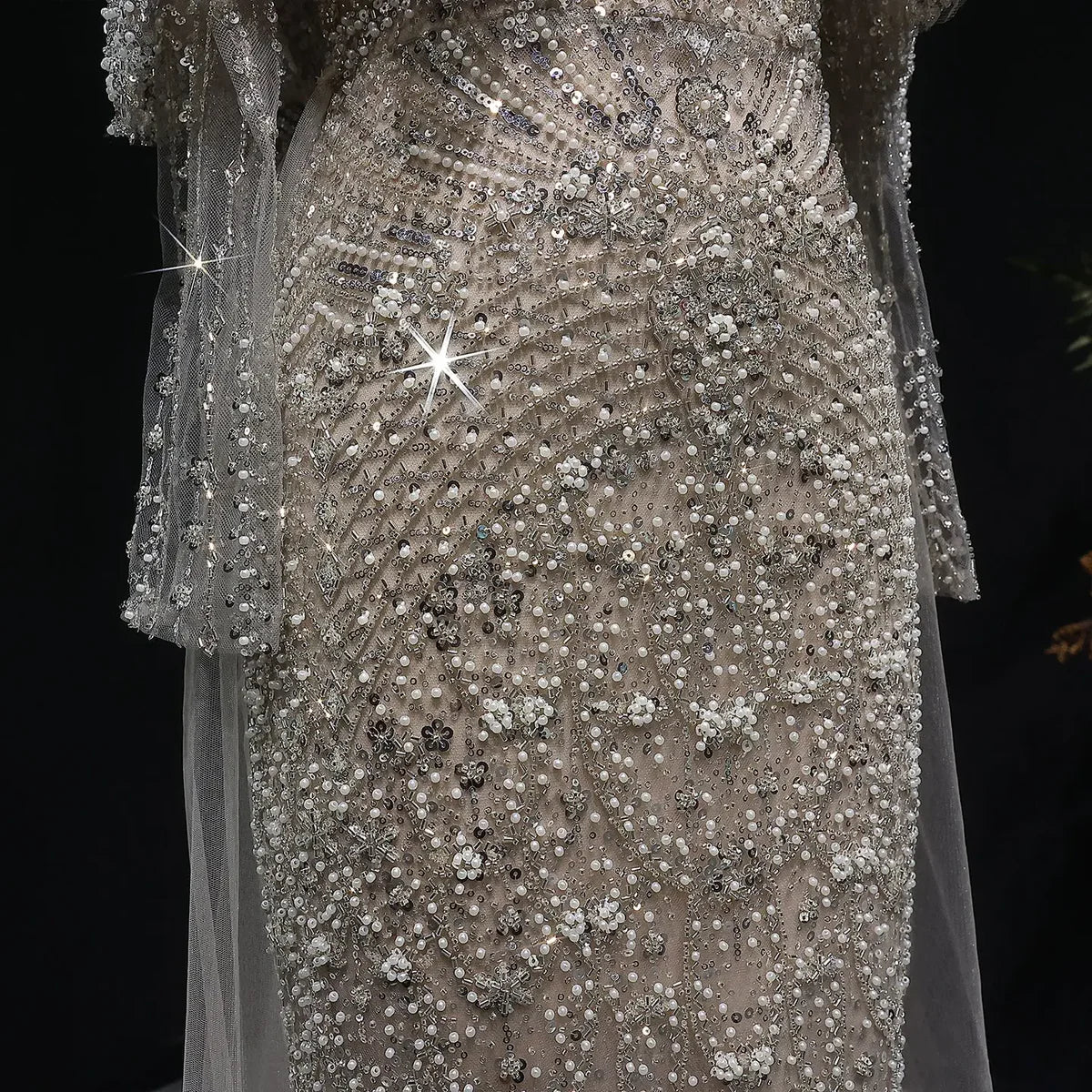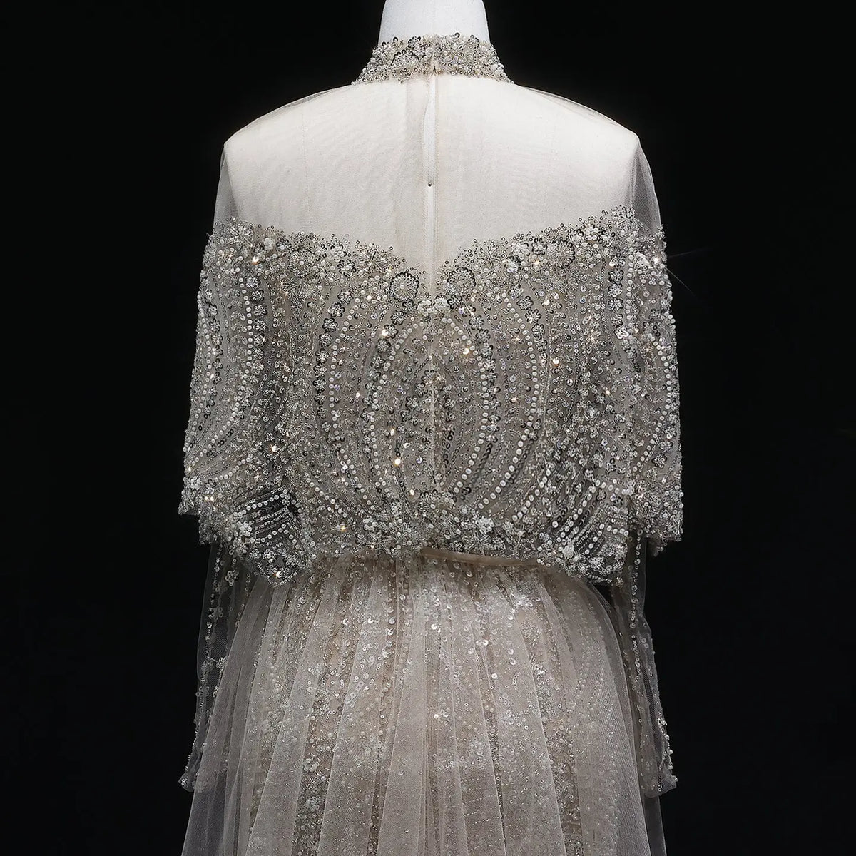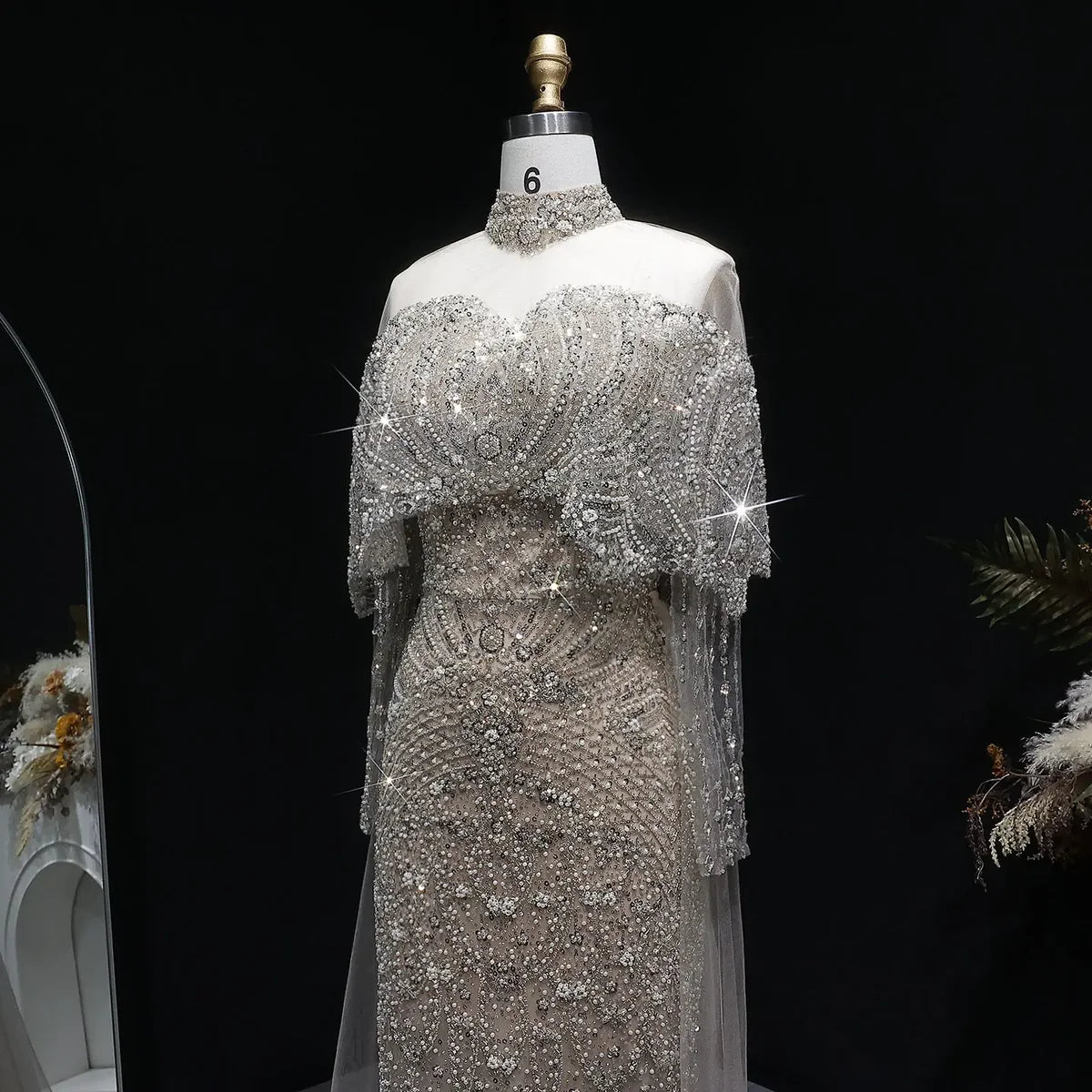 Luxury Gray Dubai Evening Gown with Detachable Overskirt SS557