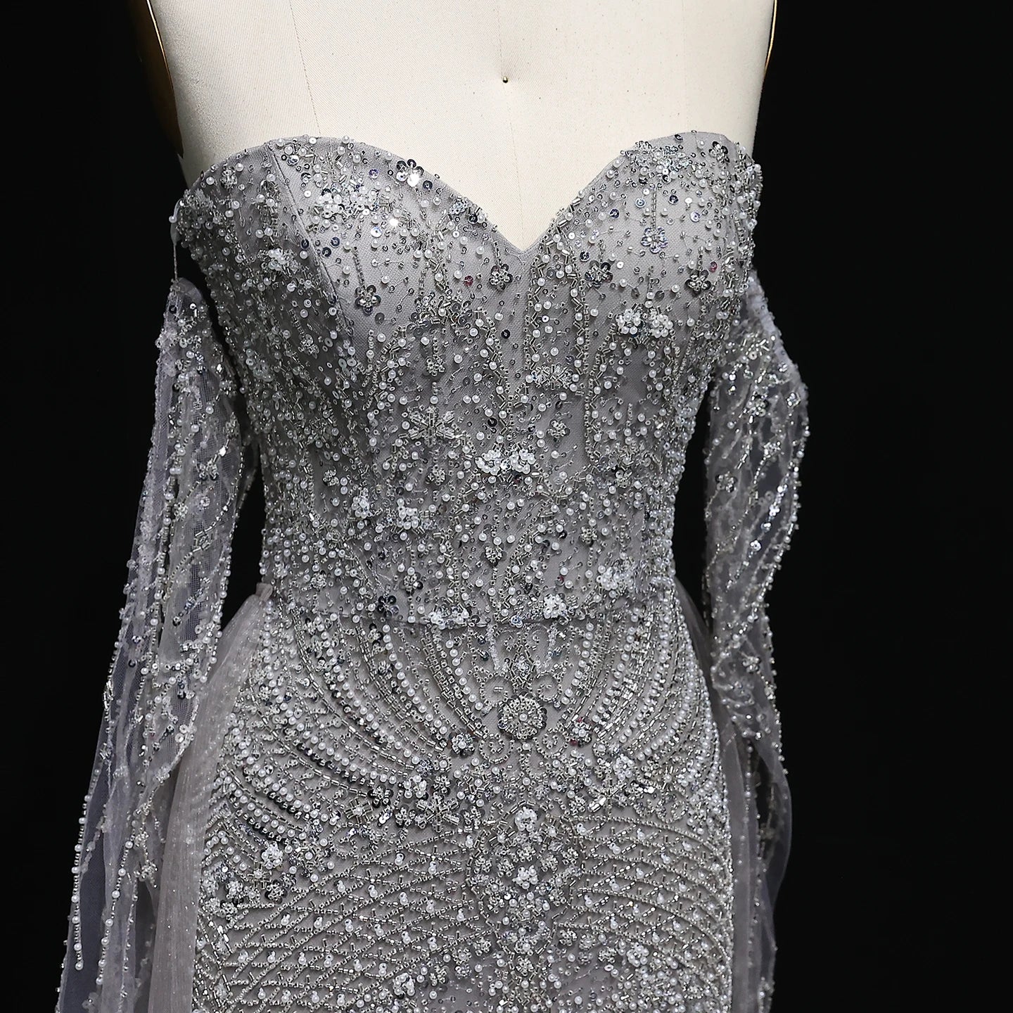 The Dreamy Vow Luxury Gray Dubai Evening Gown SS557 features a sophisticated design with a detachable overskirt, offering versatile styling options for elegant events. Crafted to provide a luxurious fit, this gown combines timeless gray tones with refined tailoring, ensuring a striking presence at any formal occasion. The detachable overskirt adds adaptability, allowing you to customize your look with ease.