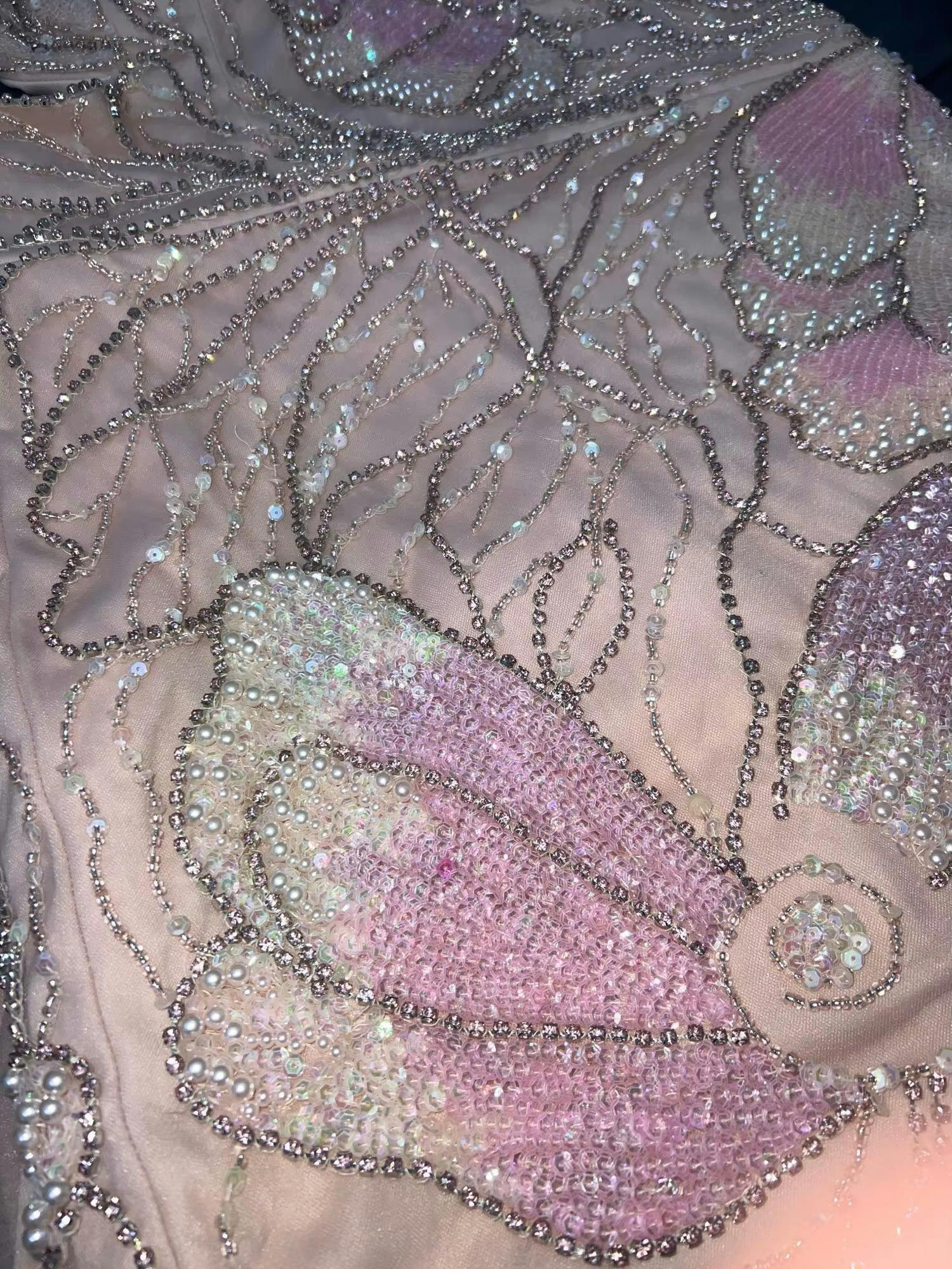 Elevate your fashion game with Dreamy Vow's Luxury Mermaid Pink Evening Dress. Featuring feather accents and a delicate scarf, it's perfect for a blue-themed wedding or prom night. The spaghetti straps add a touch of elegance. Get ready to turn heads with SS478.
