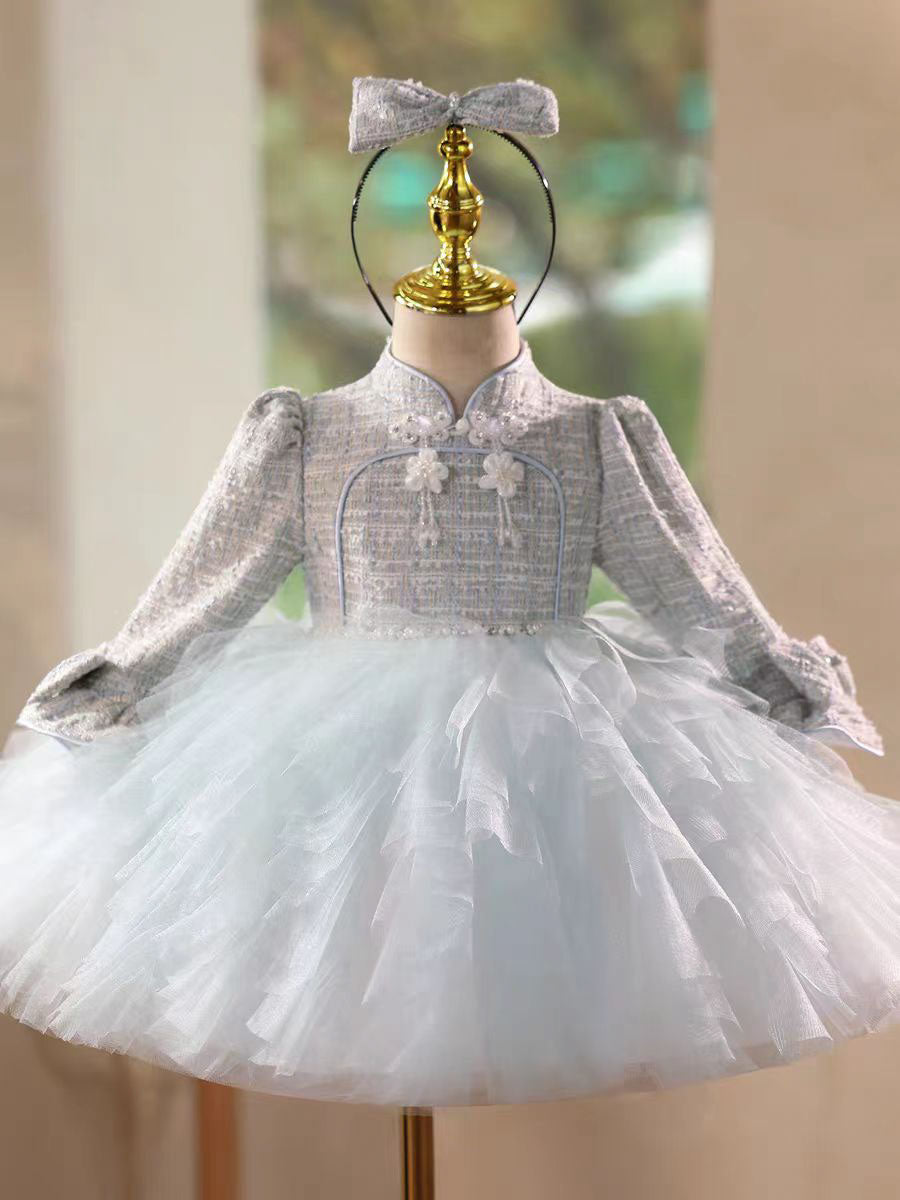 Blue Elegant Long Sleeve Princess Flower Girl Birthday Dress J727
