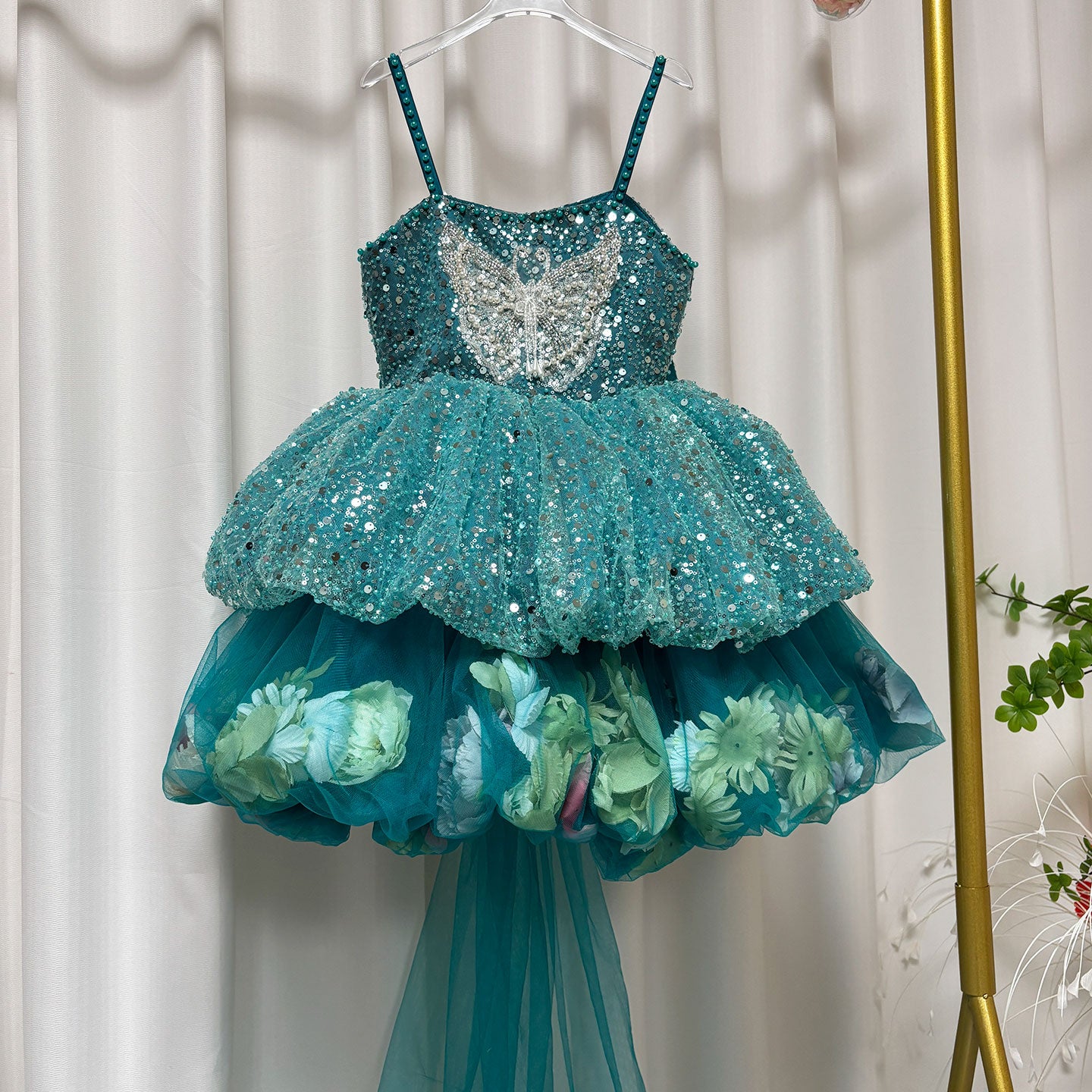 Elegant Flower Girl Dress with Floral Details for Weddings Parties J030