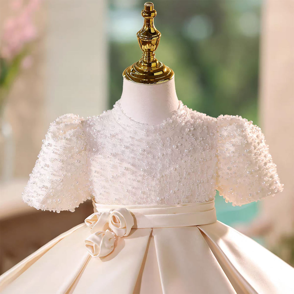 Flower Girl Dress with Stain Pearls for Birthday Wedding Party J582