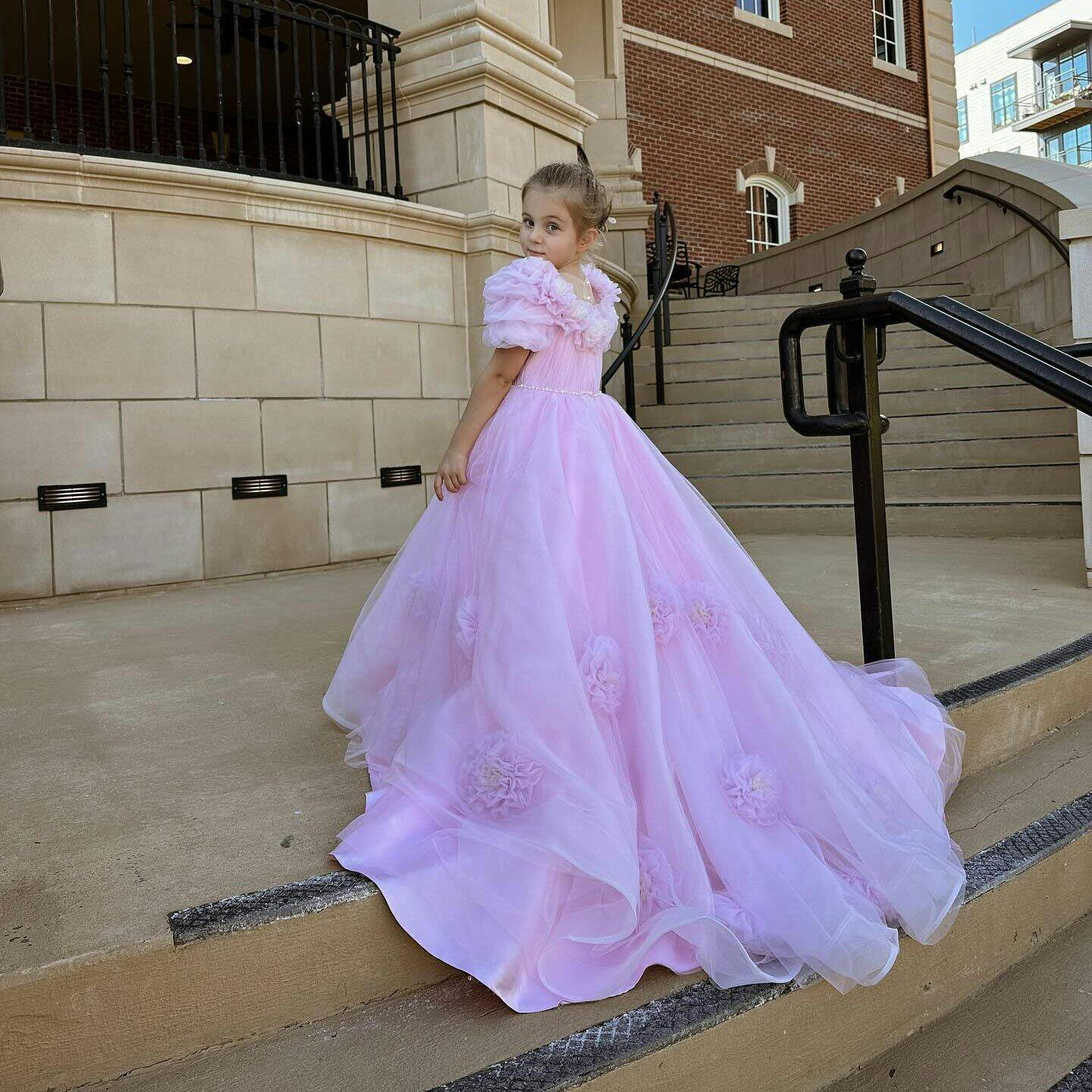 DreamyVow Luxury Arabic Pink Girl Dress Handmade Flowers Princess Gown Kids Wedding Birthday Communion Party Quinceañera J150-DreamyVow