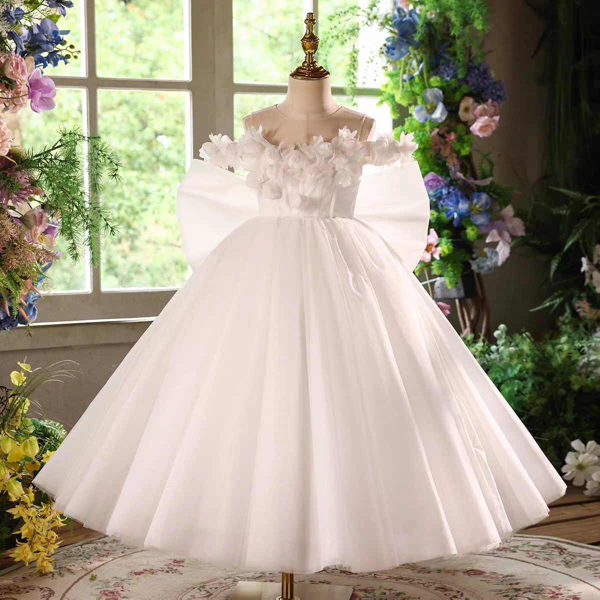 Elegant Off Shoulder Princess Girl Dress Birthday Pageant Gown D234