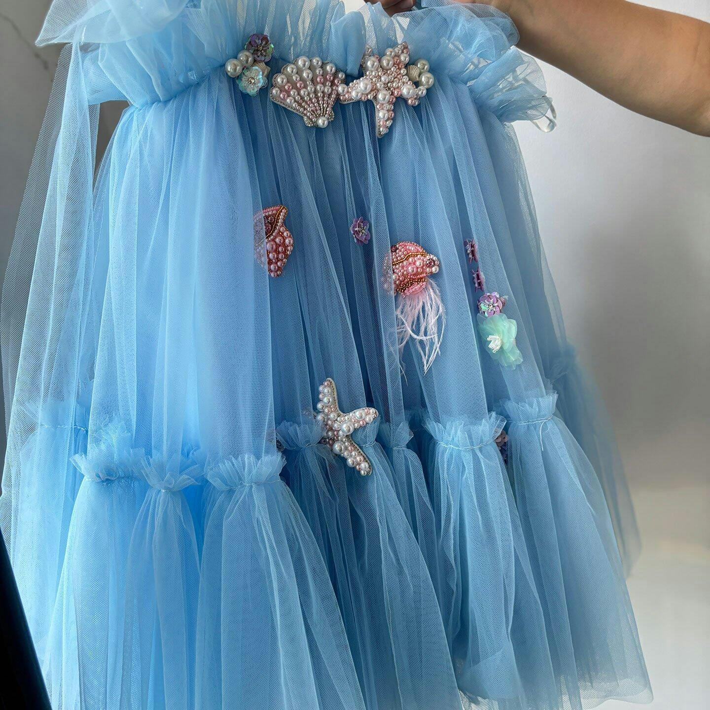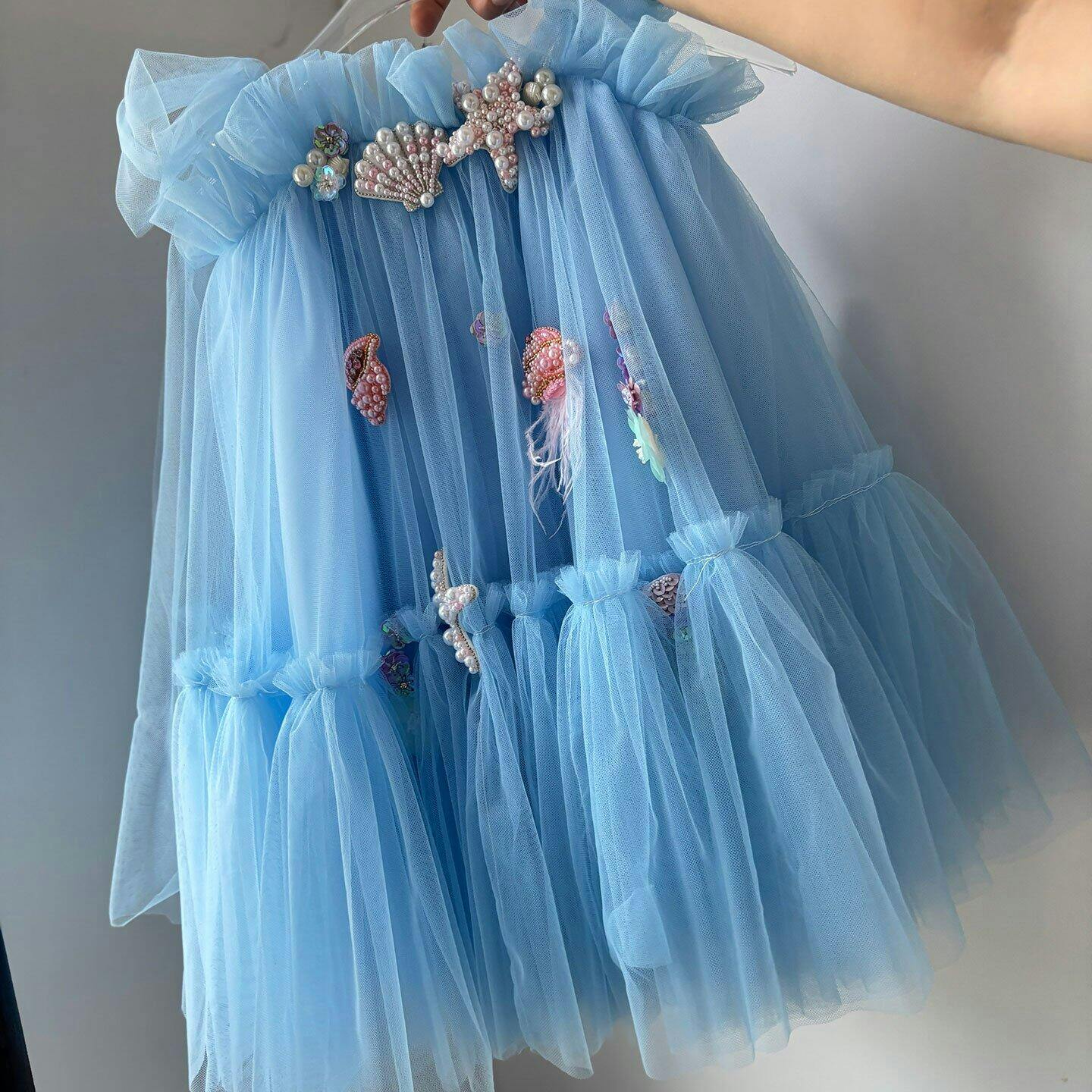 Elevate your little princess's look with our Dreamy Vow Luxury Blue Baby Flower Girl Dress. Made with delicate mini beading and pearls, this dress exudes elegance and charm. Perfect for birthdays, weddings, communions, or any special occasion. Trust in the quality and style of J038 for your little one.