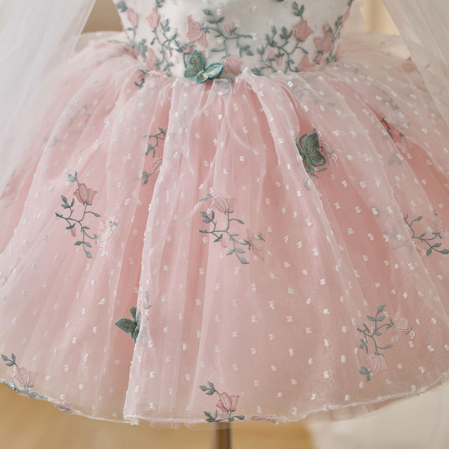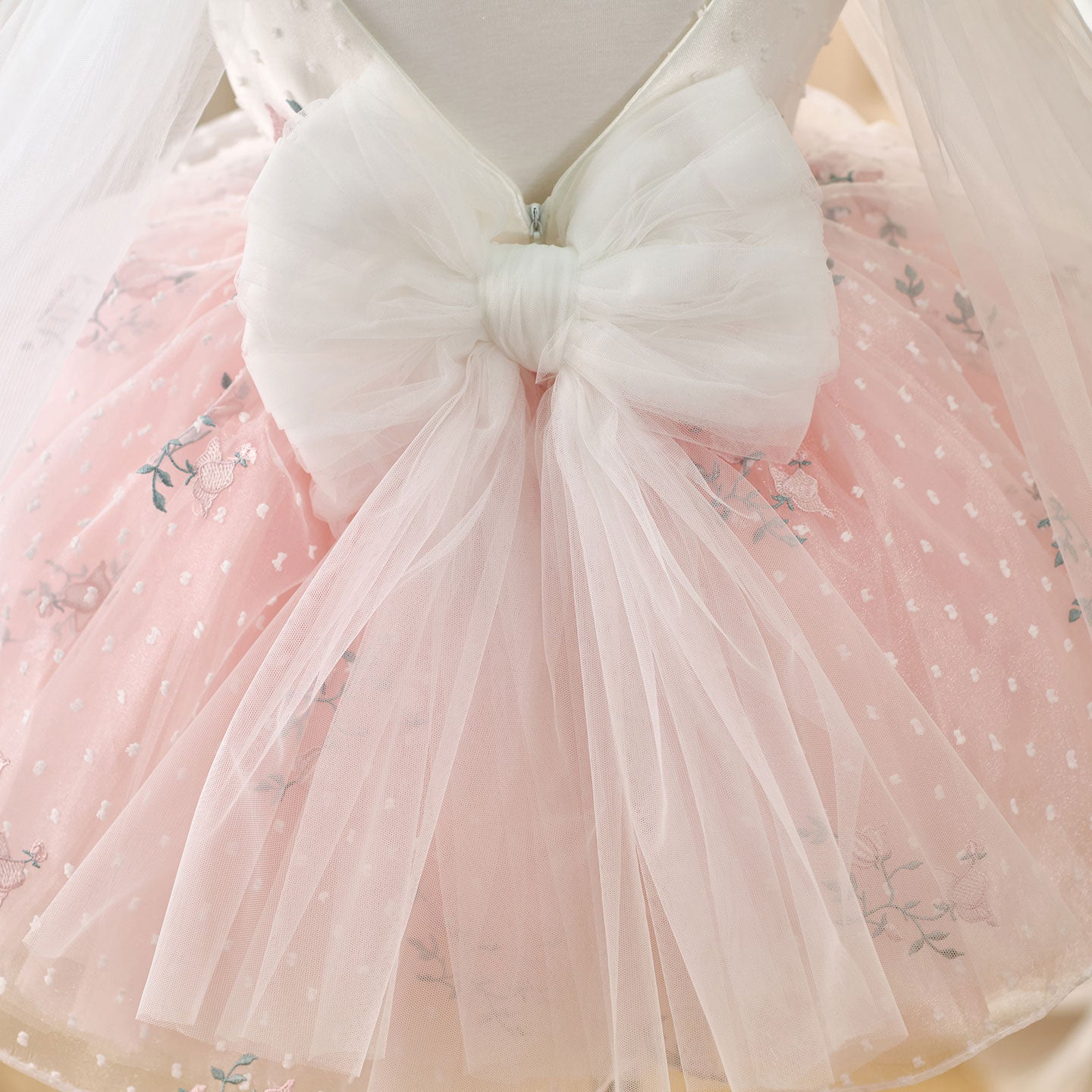 Expertly crafted with intricate embroidered flowers, this V-neck dress is a dreamy option for your little flower girl. The bow on the shoulder adds a charming touch to this elegant dress. Give your flower girl the perfect outfit to walk down the aisle in.