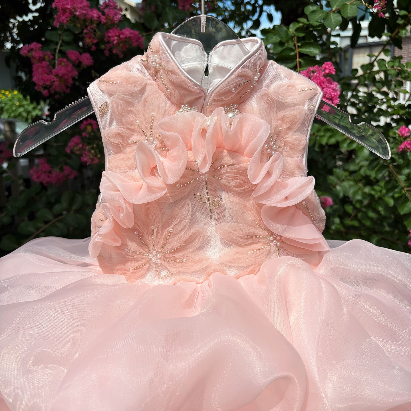 Introduce your little one to timeless elegance with this luxurious pink flower girl dress. Crafted with premium fabrics and intricate detailing, this princess-inspired gown features a flattering silhouette perfect for weddings, birthday celebrations, and special occasions. The soft pink hue complements any complexion, while delicate embellishments and flowing layers create a magical, fairy-tale aesthetic. Designed for comfort and movement, this dress ensures your daughter feels confident and radiant throughout the event. An investment in cherished memories and picture-perfect moments.