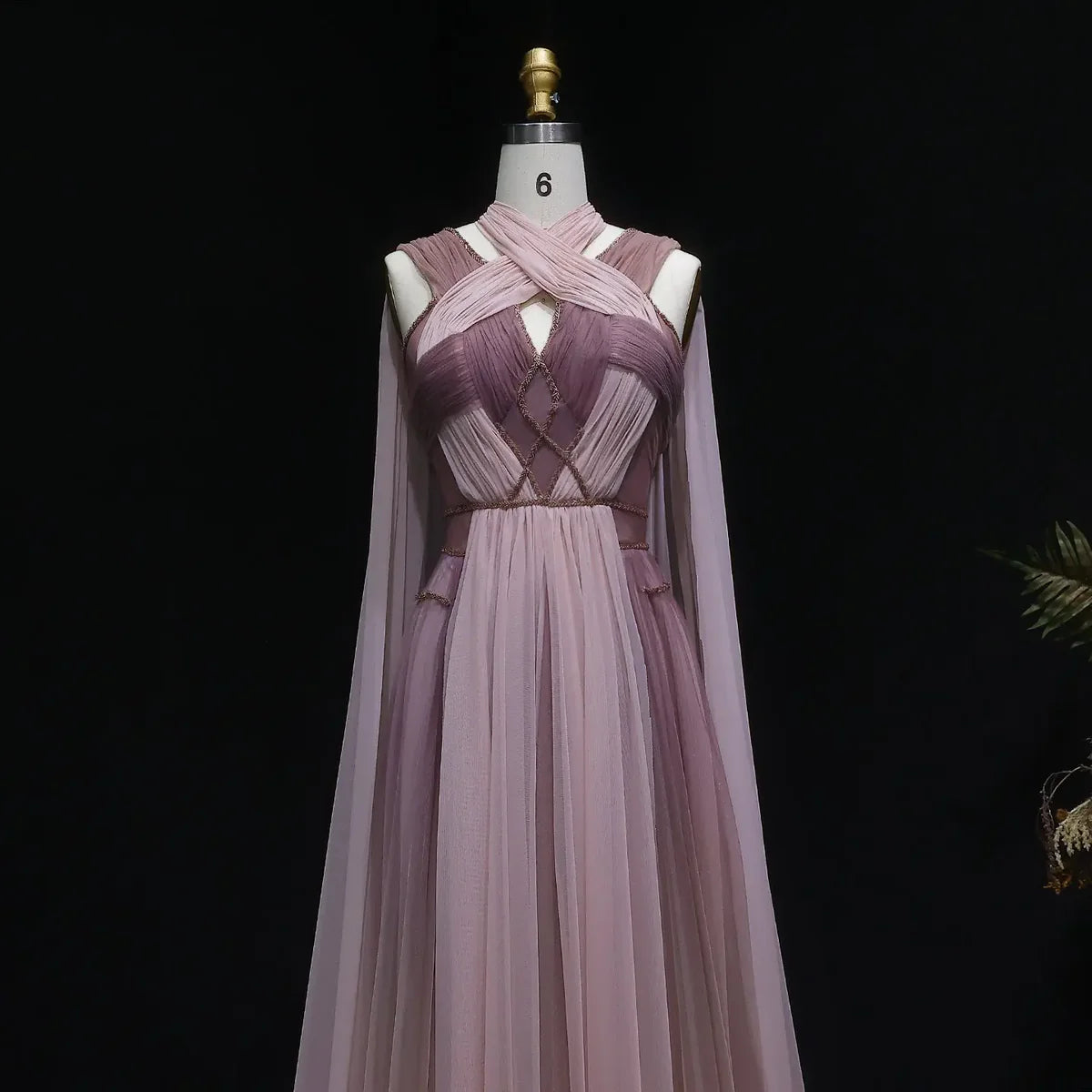 Drift into elegance with this stunning ombre evening gown, where soft blush tones deepen into rich rose at the hem. The fitted bodice provides graceful support, while the flowing cape adds dramatic movement and sophistication. Perfect for formal galas, weddings, and black-tie events, this piece combines timeless glamour with contemporary design. The seamless color gradient creates a flattering silhouette that photographs beautifully. An investment in refined luxury that transcends seasons.