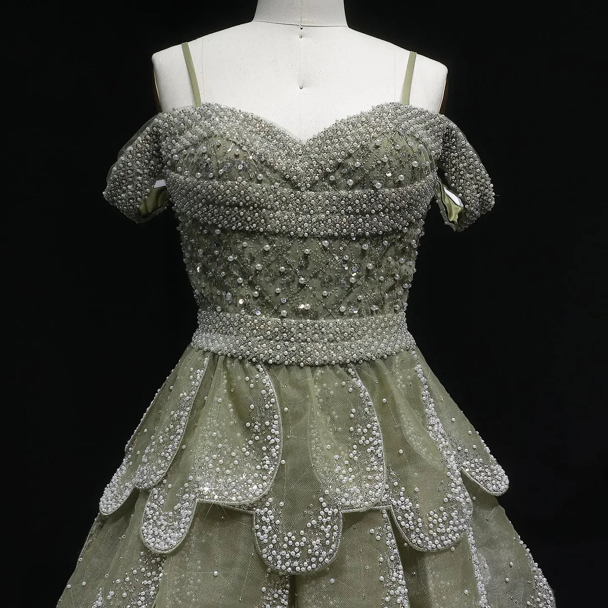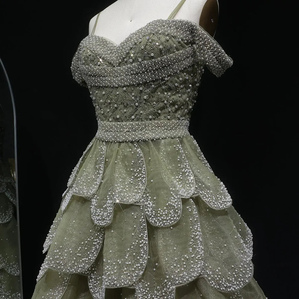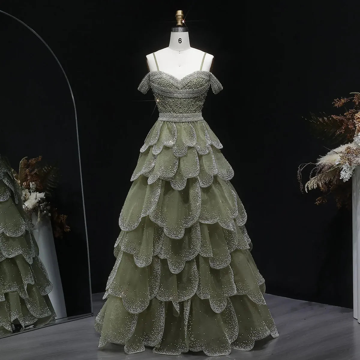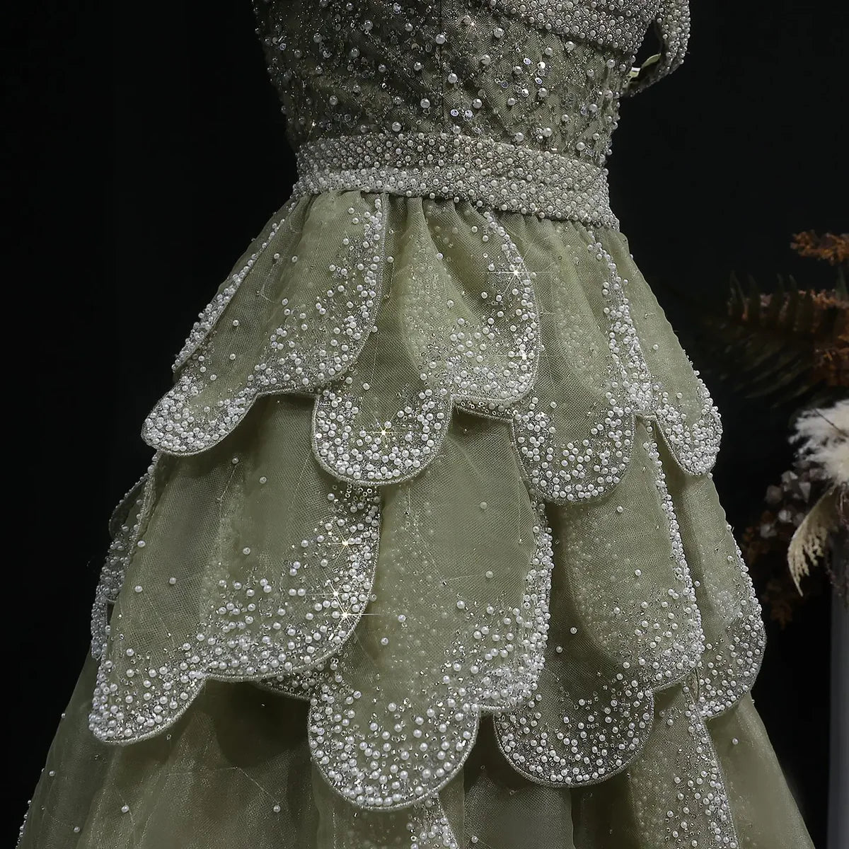 # Elegant Green Layered Ruffle Evening Dress SS385 Make a refined statement in this verdant gown, where cascading ruffles create architectural interest and dynamic movement. The jewel-tone green provides a sophisticated alternative to traditional evening wear, offering depth and richness that photographs beautifully. Strategically layered ruffles add dimension without overwhelming the silhouette, while the structured bodice ensures a polished fit. Each tier is precisely constructed to create a sense of motion and elegance as you move through the evening. The thoughtful design balances drama with restraint, making this piece ideal for galas, formal receptions, and milestone celebrations. A distinctive choice for those who appreciate understated luxury with contemporary flair.