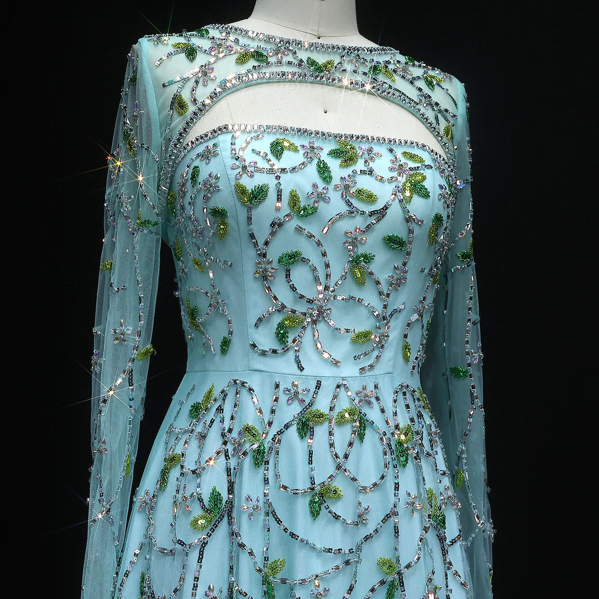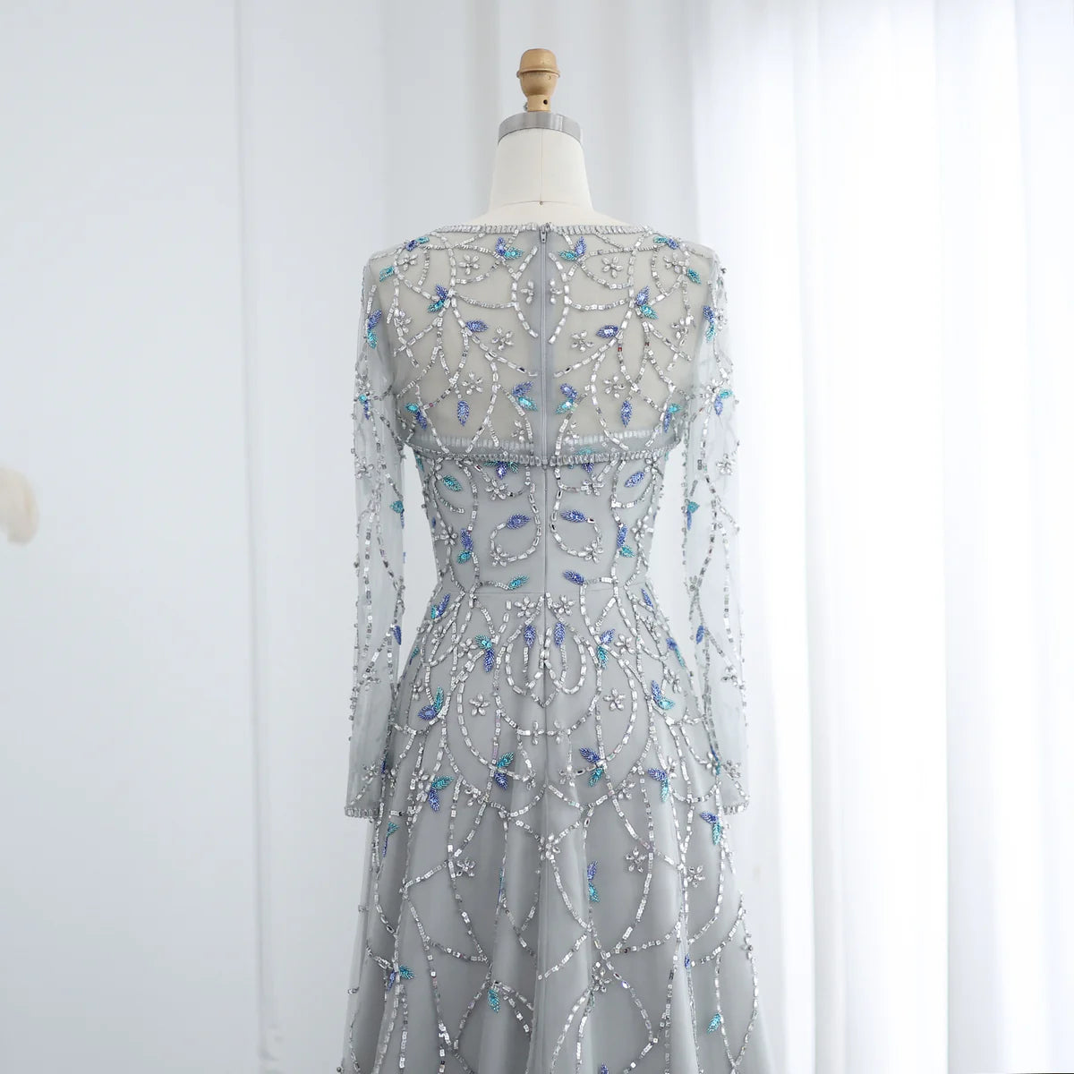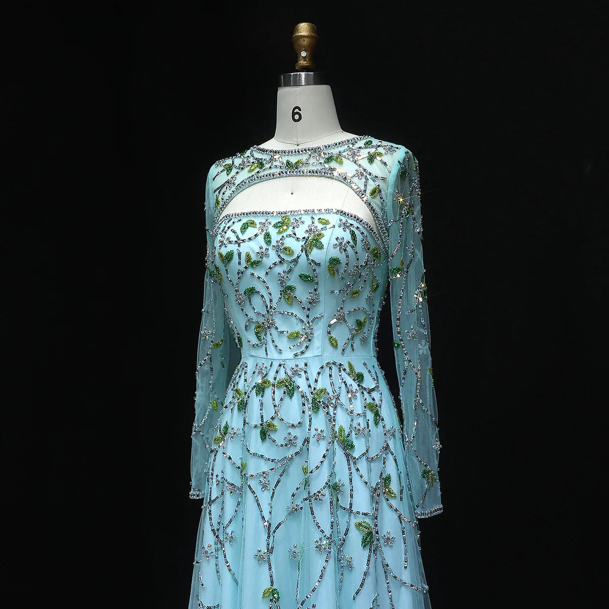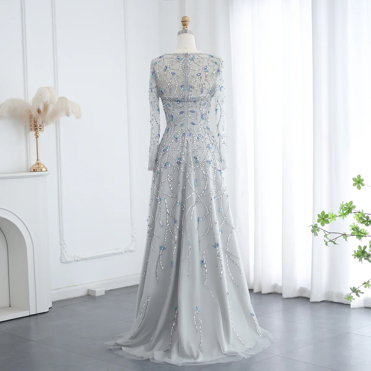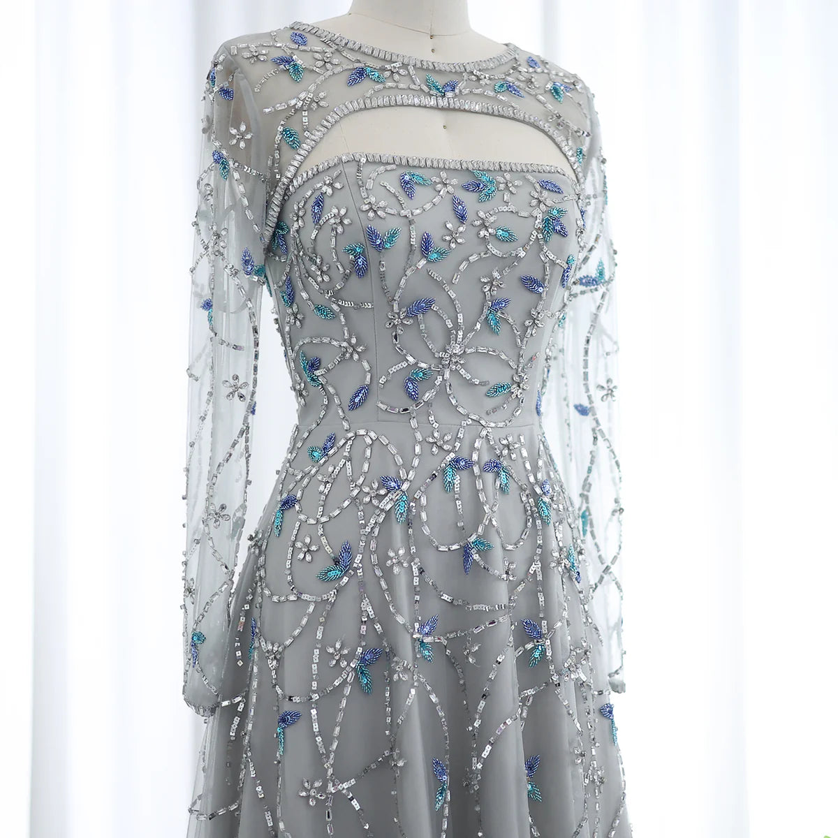 Elegant Beaded Sequin Long Sleeve Prom Dress SS593