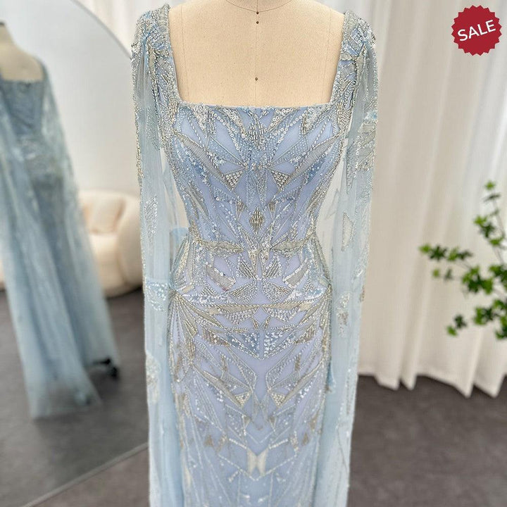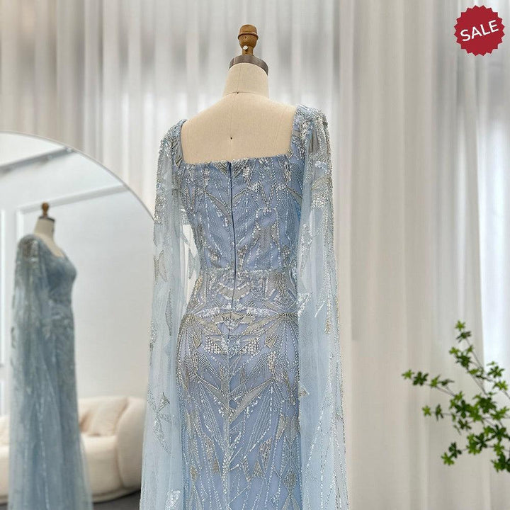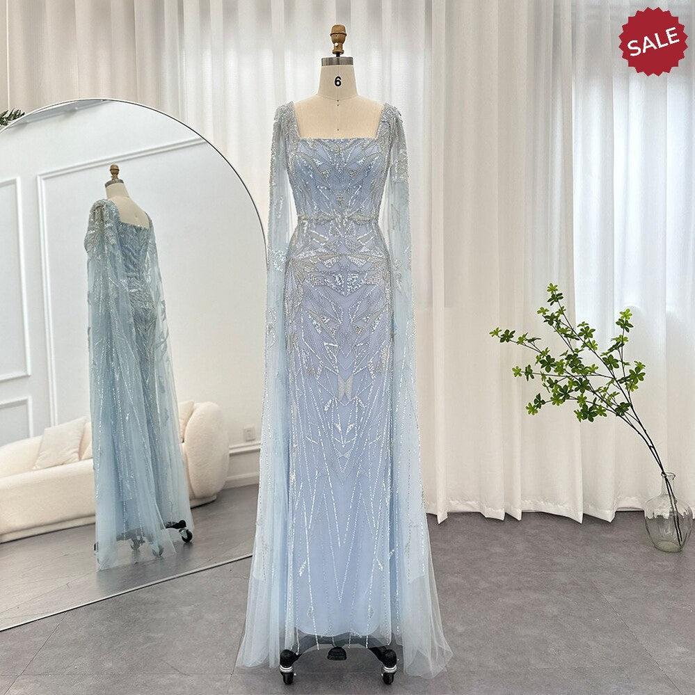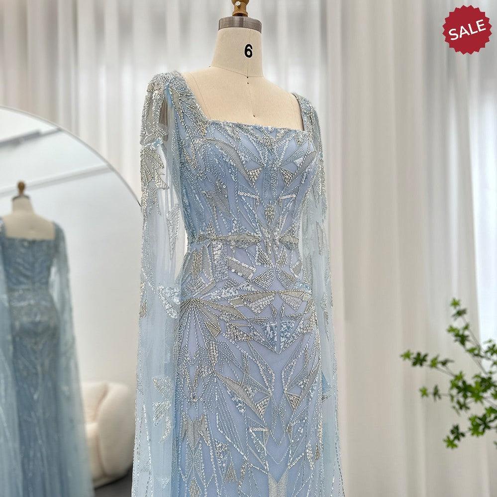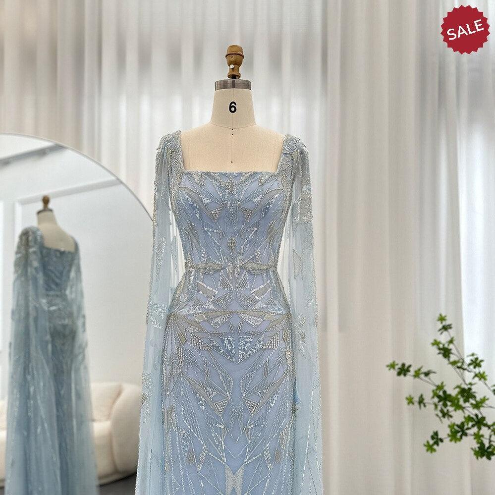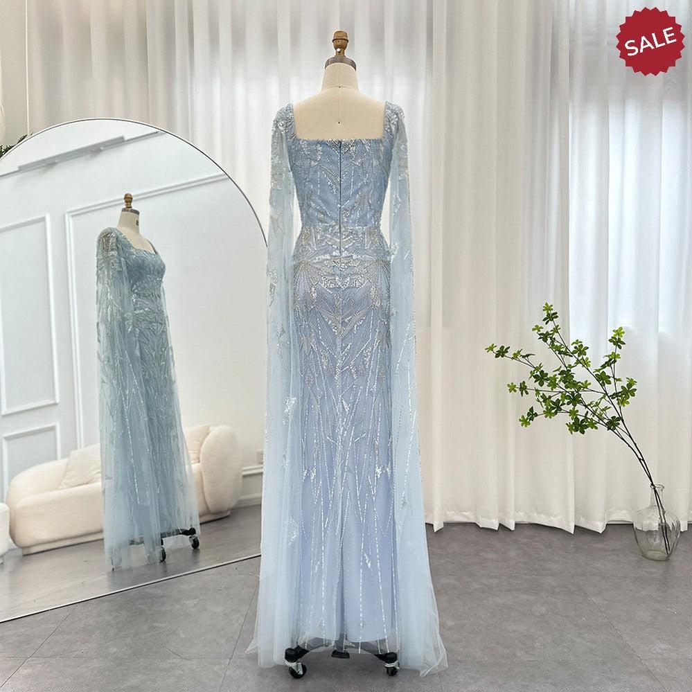 Elevate your style with our Dreamy Vow evening dress in nude pink. The luxurious Saudi Arabic design features a square collar and elegant cape sleeves, perfect for any wedding party. Make a statement with our haute couture gown, adding a touch of glamour to your special day.
