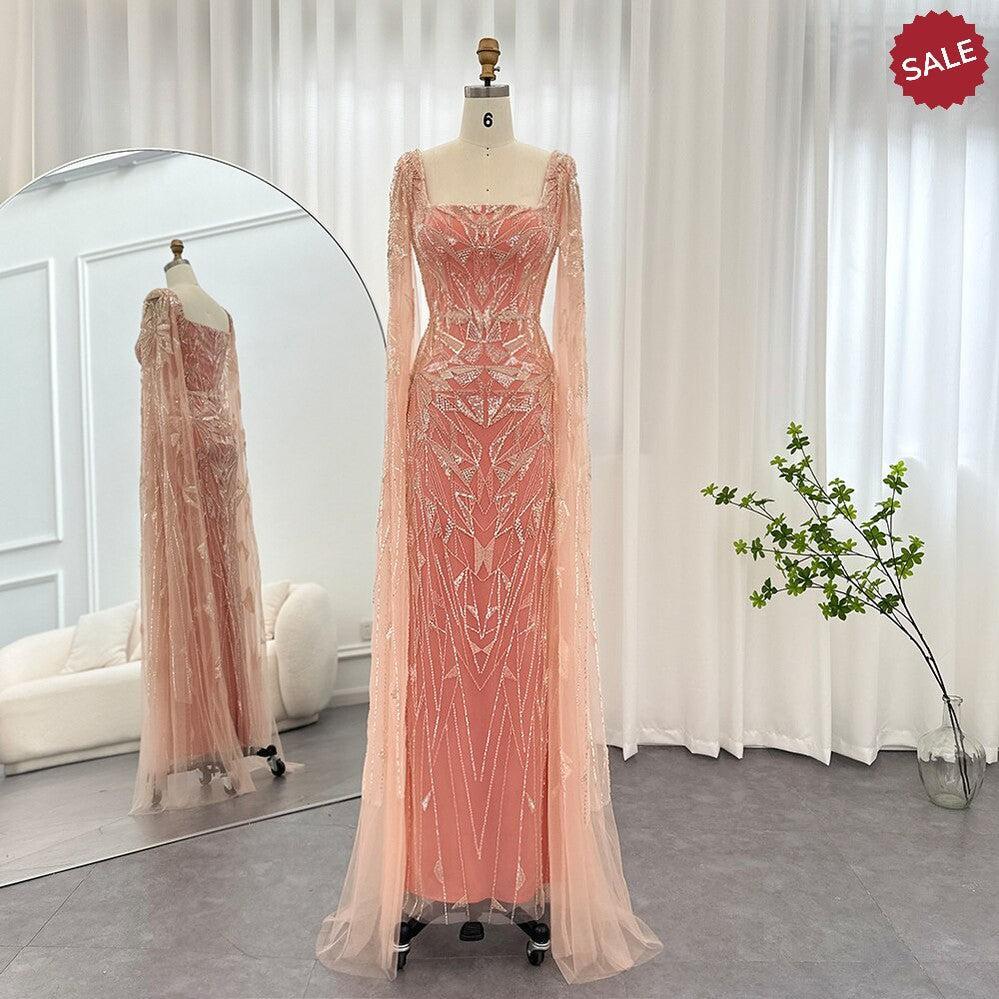 Nude Pink Luxury Evening Dresses with Cape Sleeves On Sale SS497