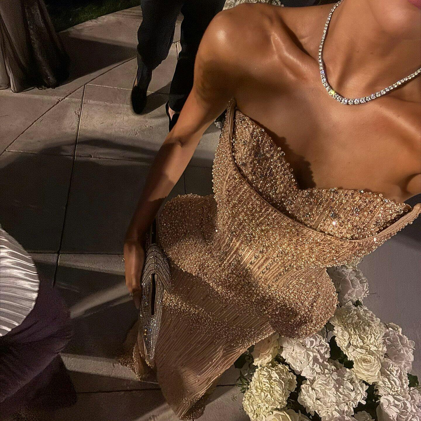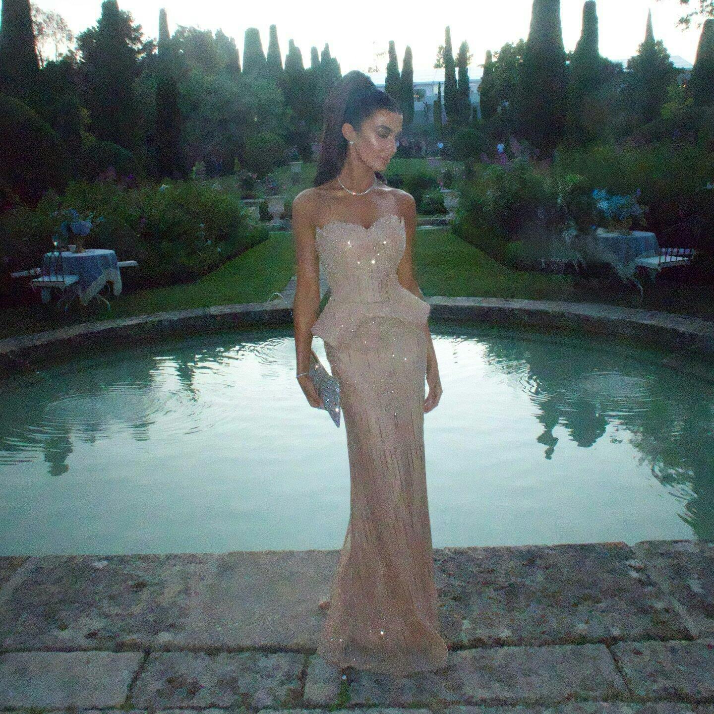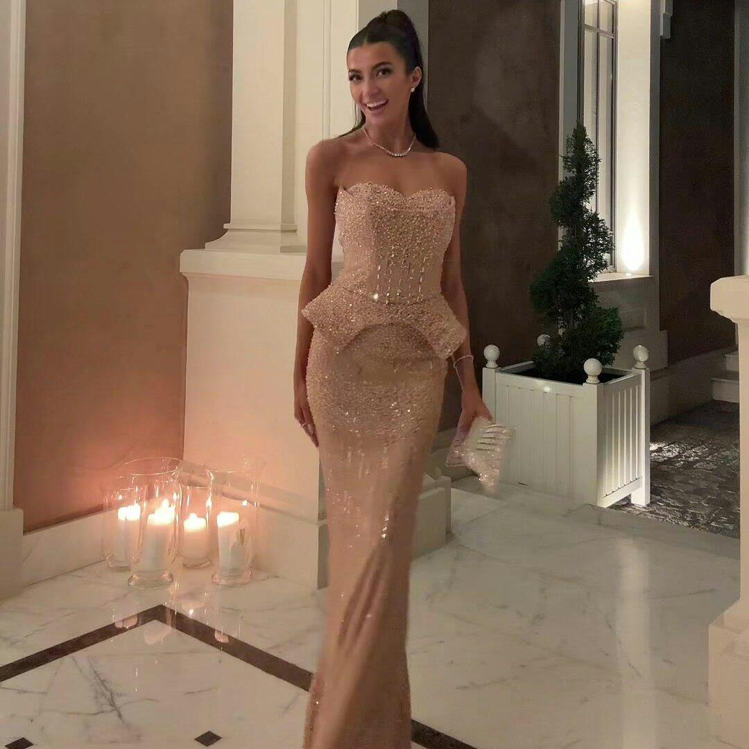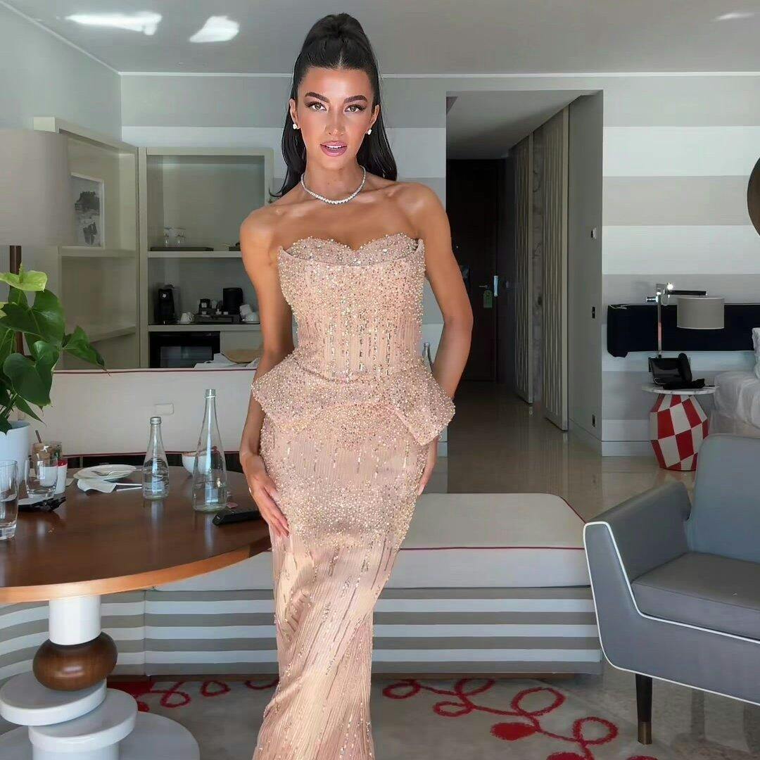 This elegant Silver Grey Crystal Evening Dress will make you the center of attention at any formal event. The off-shoulder cape adds a touch of sophistication while the sparkling crystals bring a glamorous touch to this gown. Ideal for an evening of elegance and luxury.