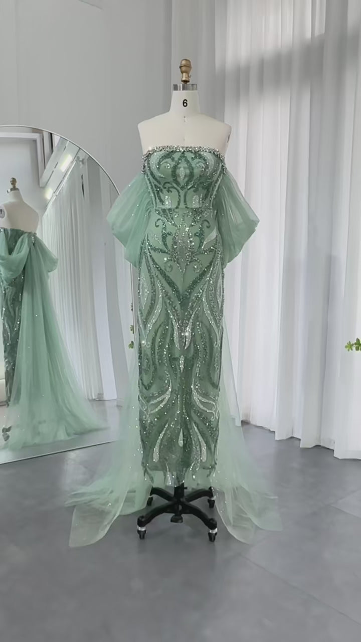 Strapless Sage Green Evening Dresses with Cape Sleeves SS345