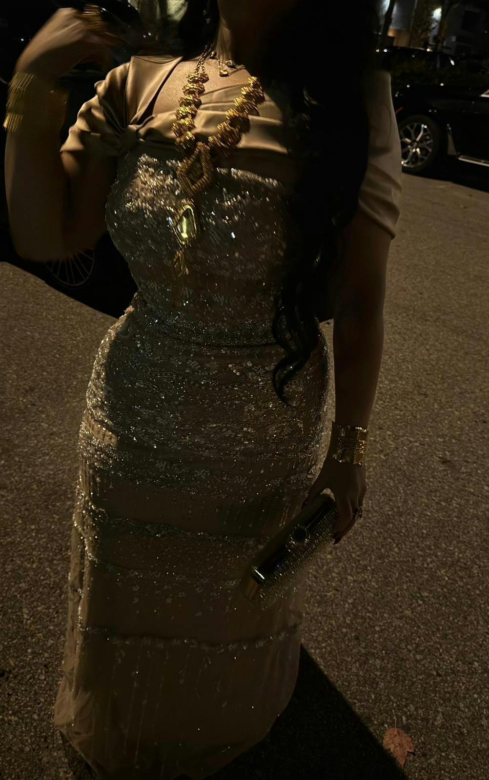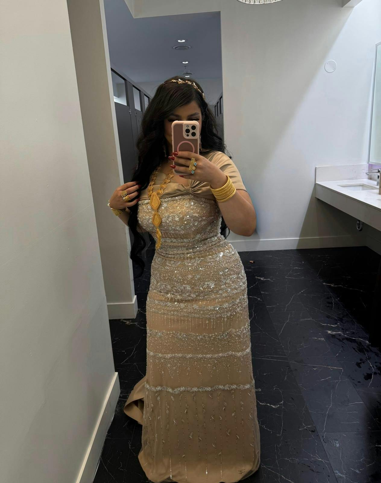 Expertly crafted for a luxurious and elegant evening event, the Arabic Luxury Dubai Evening Dress with Cape Long Party Gowns SS238B is the epitome of sophistication. With its intricate Arabic design and flowing cape, this dress will make you stand out in any crowd. Perfect for those seeking a glamorous and statement-making outfit.