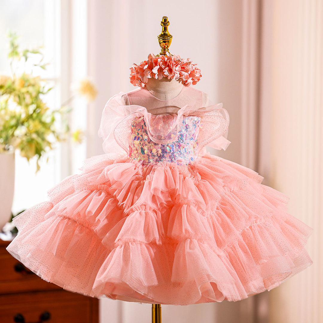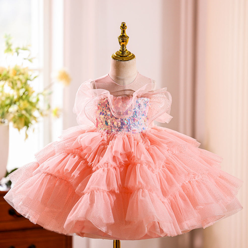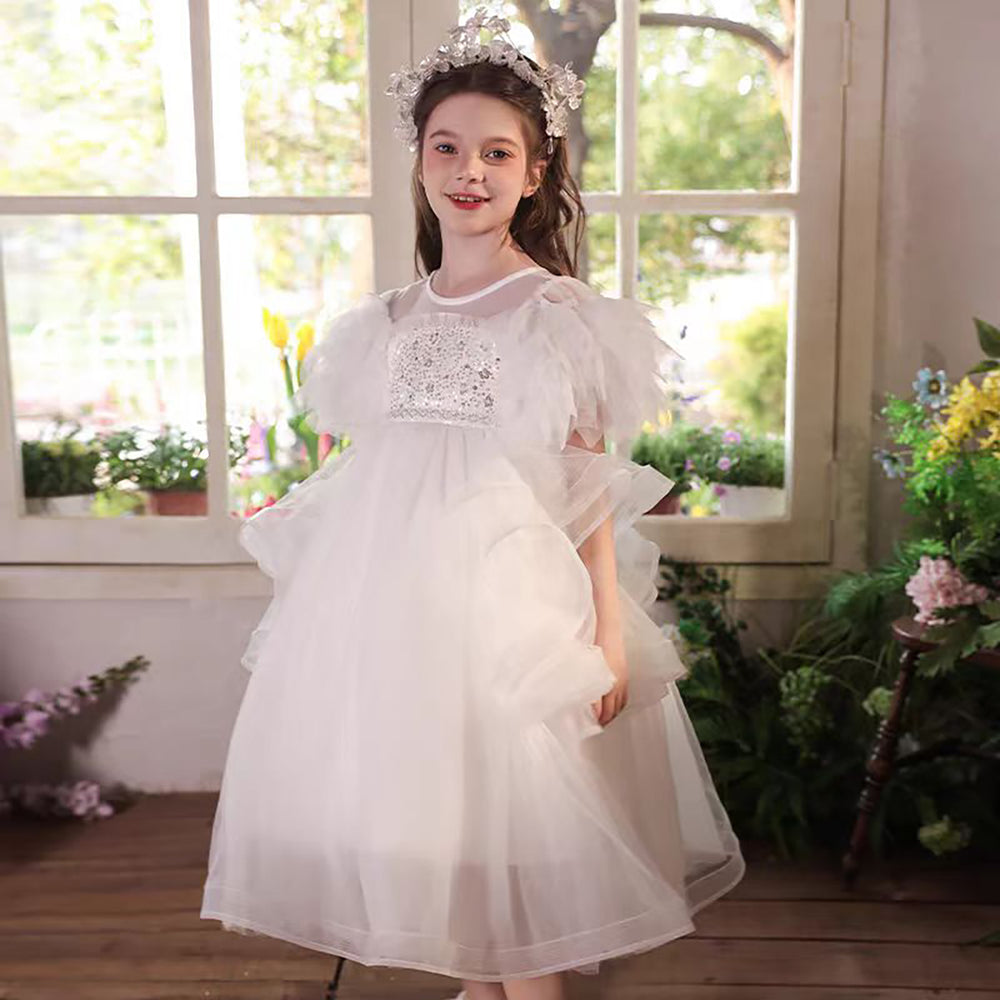 Cute O-Neck Sequined Pearl Flower Girl Dress With Bow J745