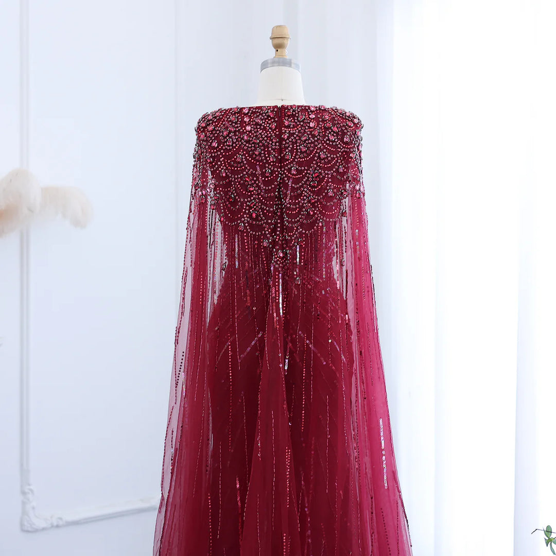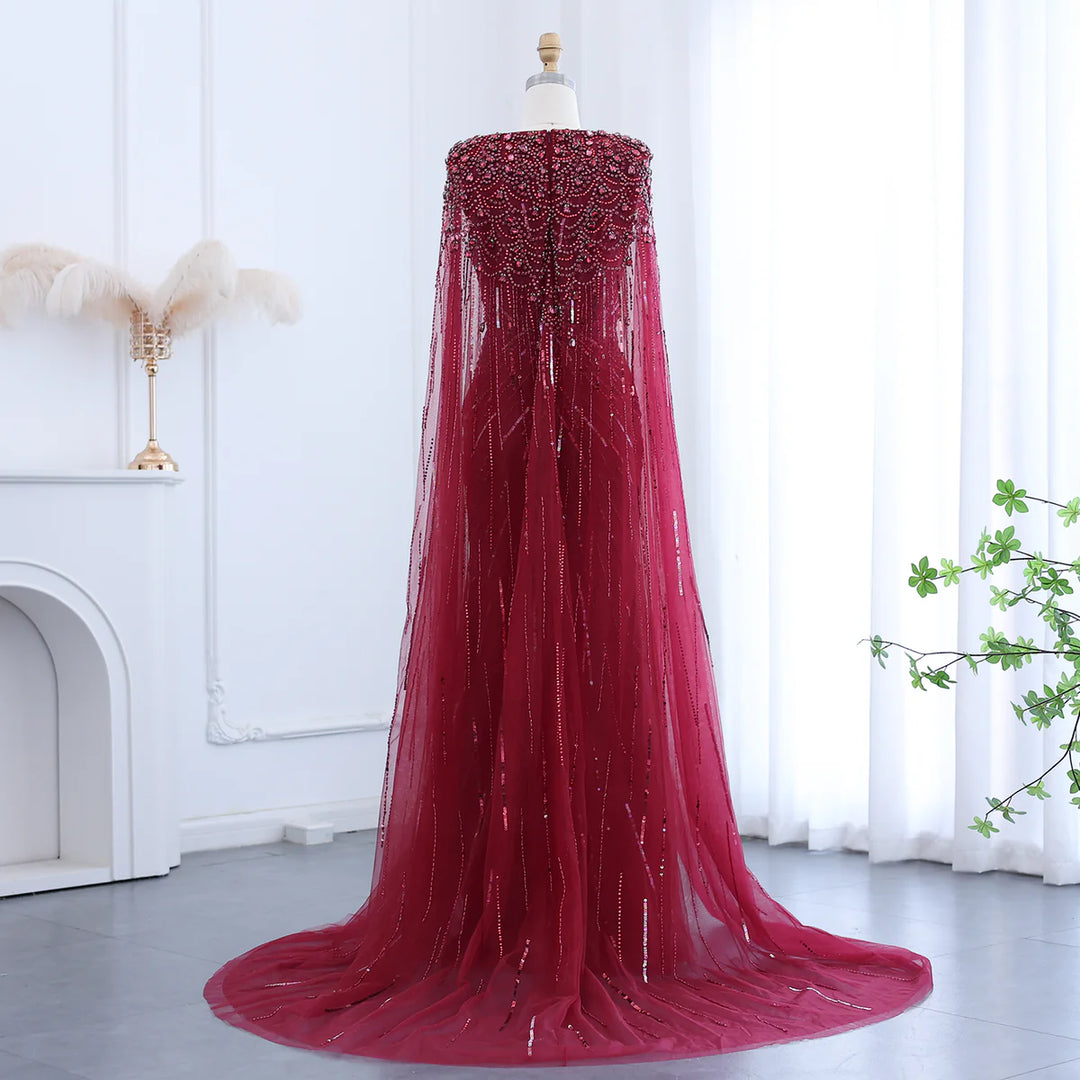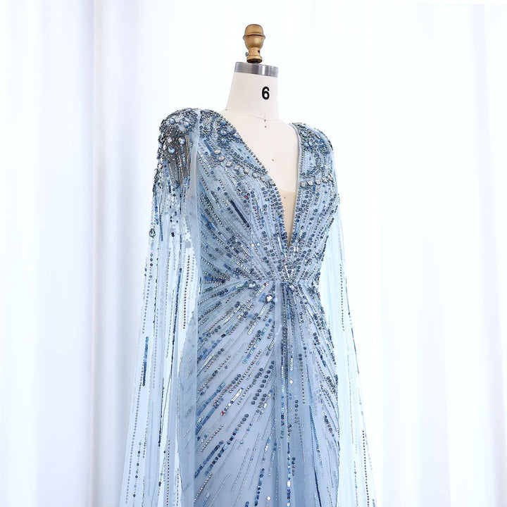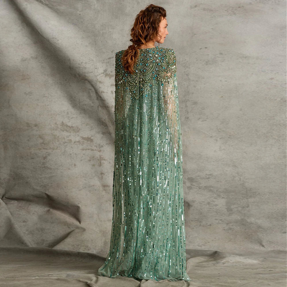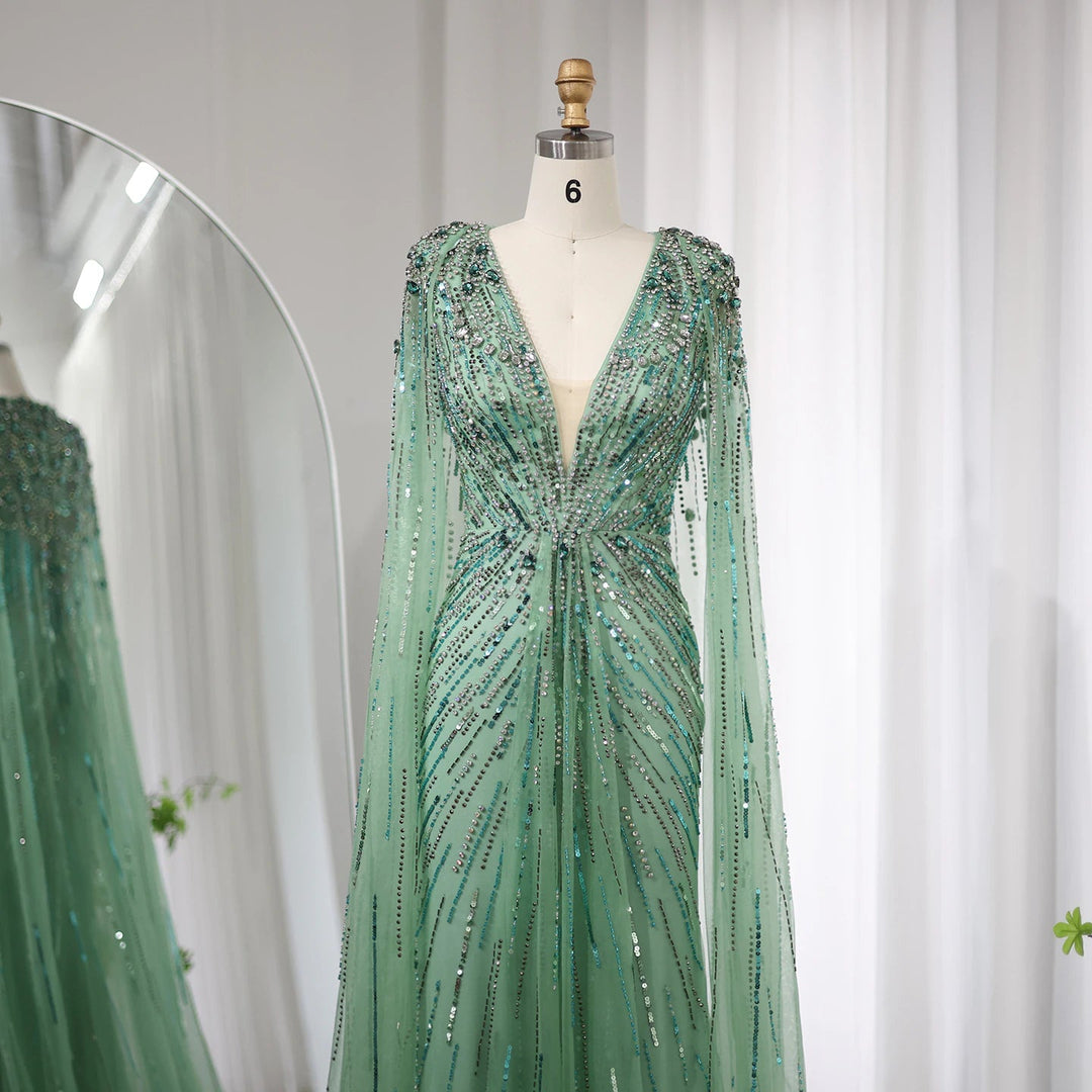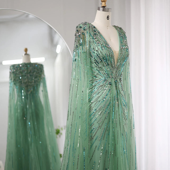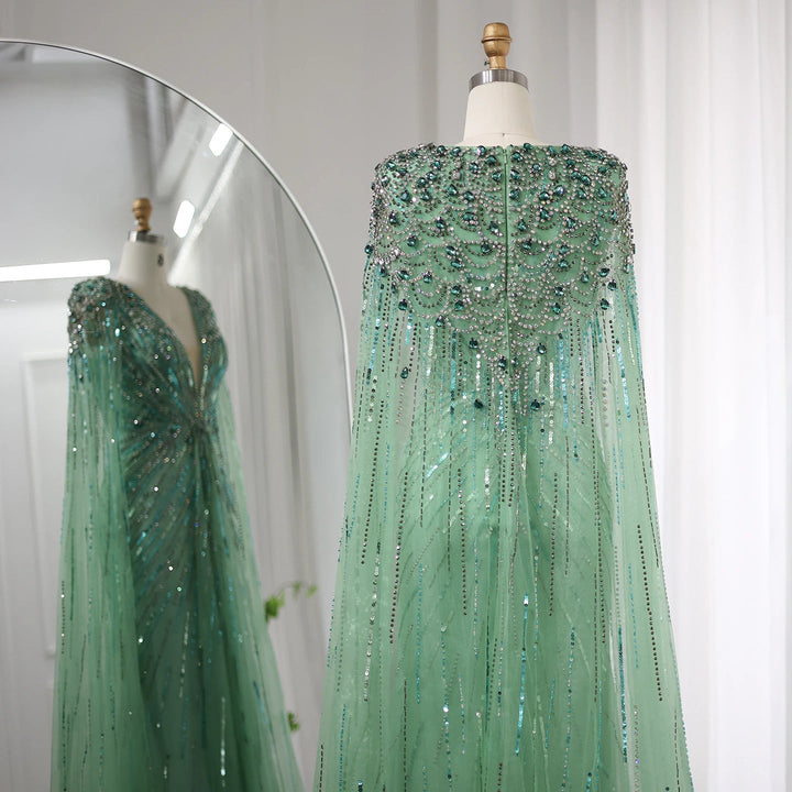 Luxury Dubai Sage Green Evening Dresses with Cape SS399