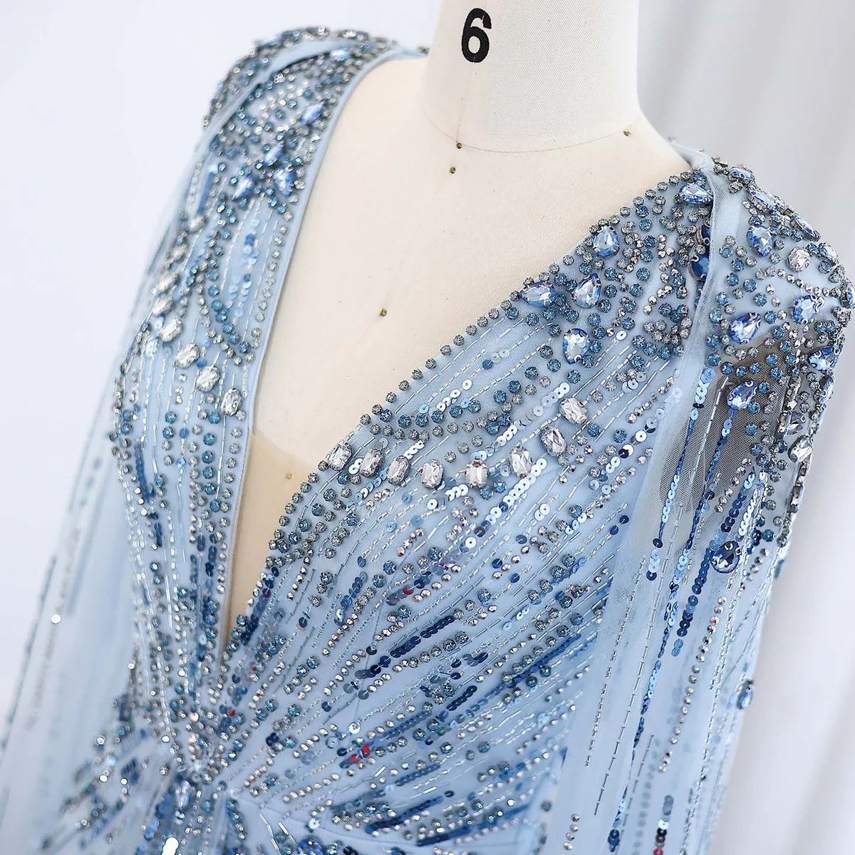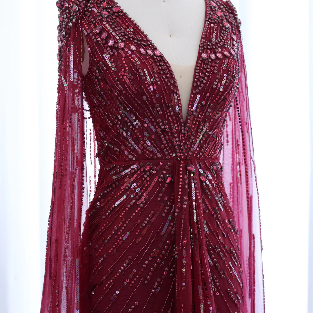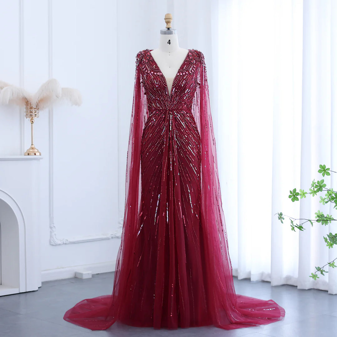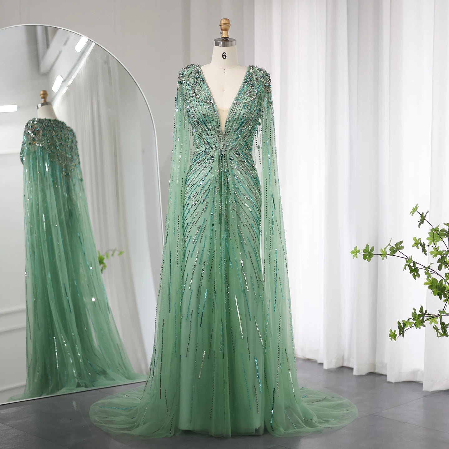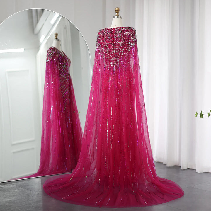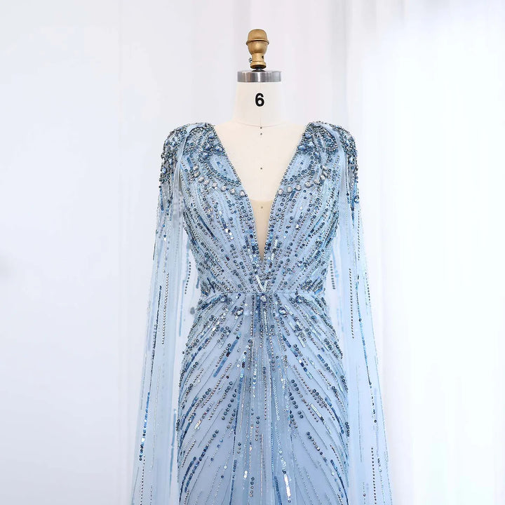Luxury Dubai Sage Green Evening Dresses with Cape SS399